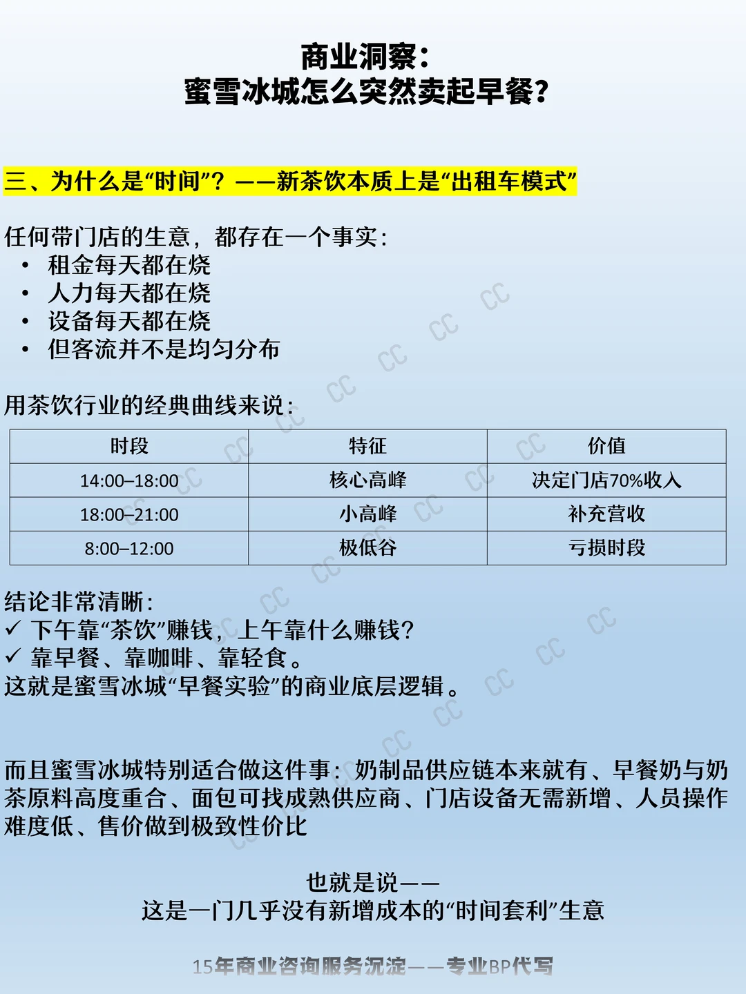 蜜雪冰城卖的不是早餐,而是上午4小时的“闲置时间资产” 当你开始经营时间,而不是只经营产品,你的生意才真正进入存量时代的打法