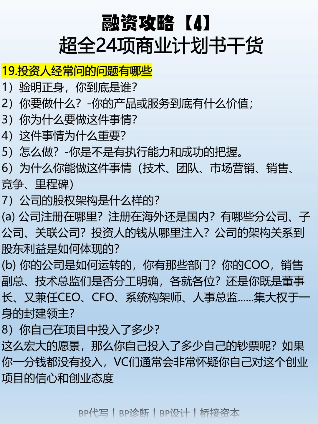 19.投资人经常问的问题有哪些?