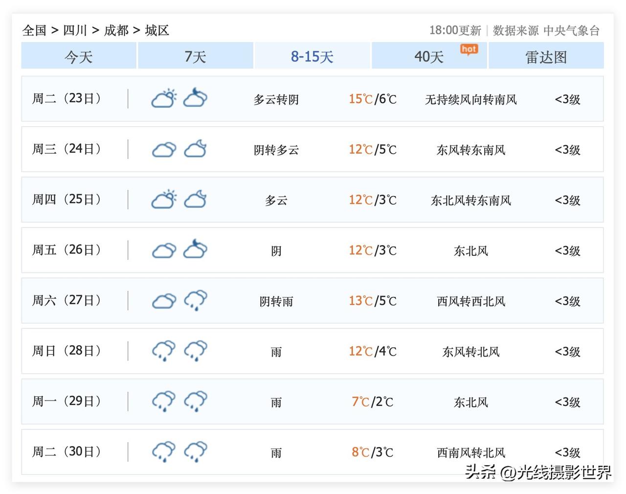 蜀犬吠日,真的成为了传说吗?!12月17日到25日,四川省成都市,好像每天都有阳光,几乎没有降雨,阴天也不多见……最近,今年秋天,今年初冬,成都市的天气真的太好了,成都的太阳,最近真的从西边出来啦! 哎哟哟! 成都的冬天,最近怎么这么多太阳啊?! 成都的冬天,快要变成冬天的济南和拉萨啦! 好吧,只是,超级计算机认为,12月底,超强冷空气来袭,成都市可能会被冻成狗啊! 12月29日和30日,成都气温暴跌至,最低气温2度……啊啊啊!成都的郊区可能要打霜啊!
