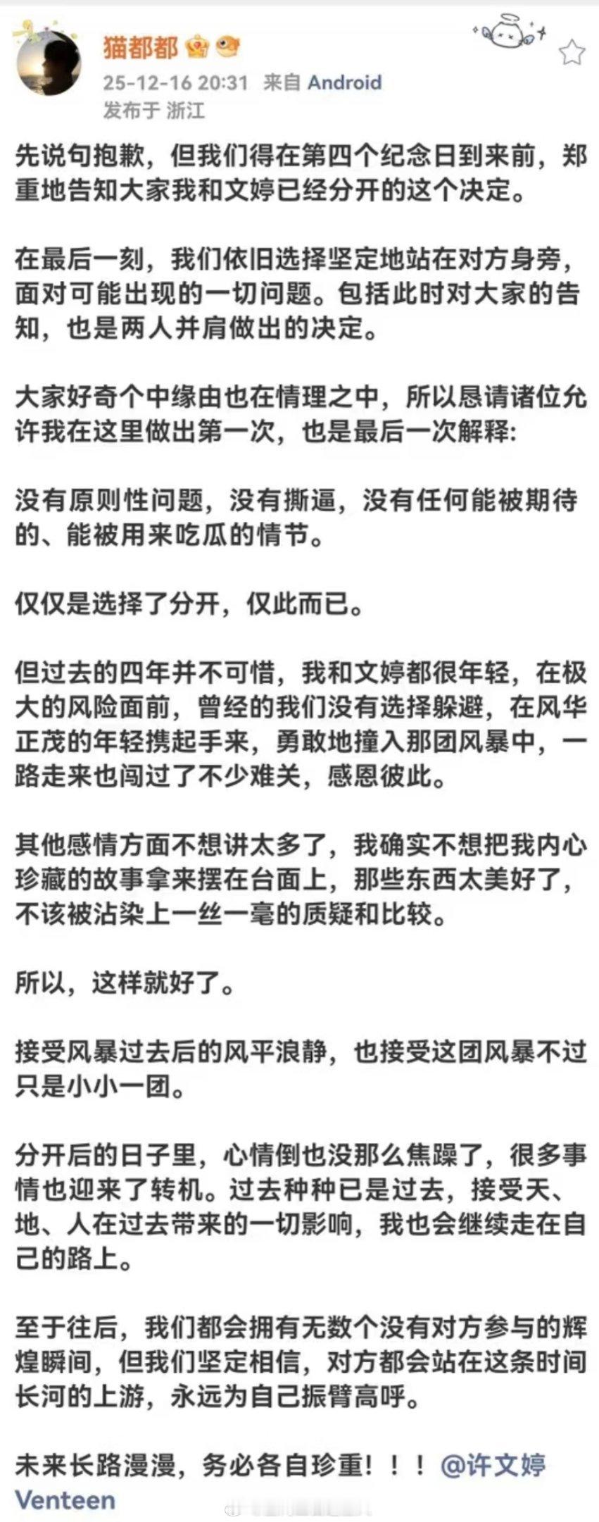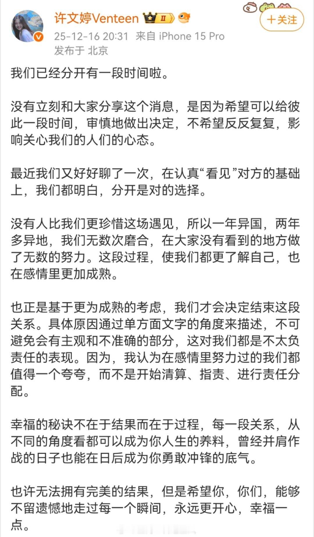 许文婷毛人龙真的分了啊,第一次知道人文cp还是offer里面许文婷打电话那段,其实也知道一直这样异地恋根本不可能长久的,分手只是早晚的事情,但还是感觉好突然啊,有情人也不一定终成眷属 毛人龙许文婷分手