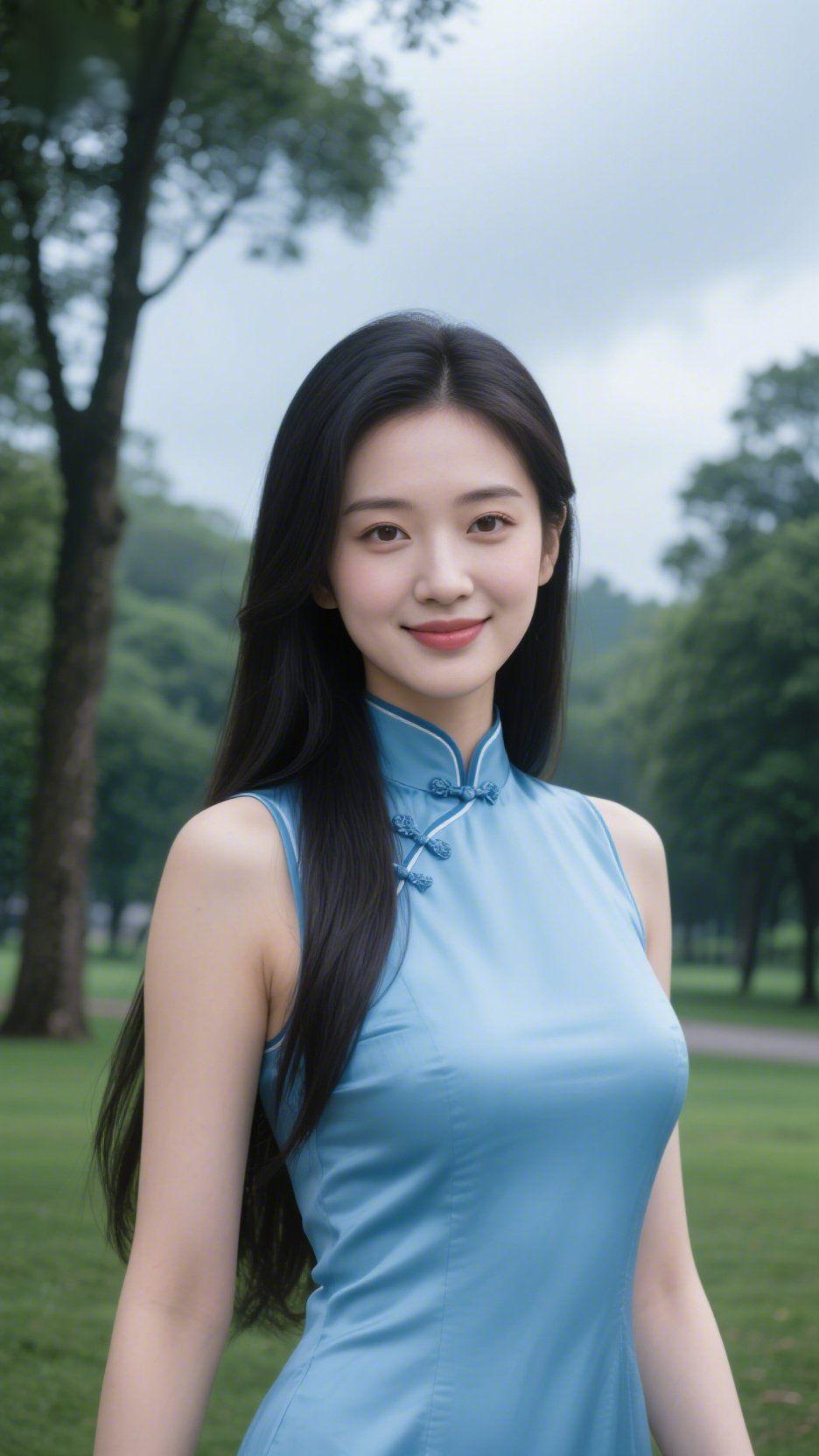 《青蓝旗袍里的春清》 草地浸着雾的柔,她是这绿意里落定的一抹青蓝——旗袍裹着云般的轻,立领盘扣是衣间点染的韵,连垂落的发梢,都沾了春的软。 她立在树影间,眉眼里的笑是化开的晨露,裹着雅色却把暖意漫得周身舒展。唇色是粉里藏的温,望之便觉风都浸了柔的甜。 美从不是艳色的堆砌,是旗袍裹的韵、是眉眼藏的清——像檐角新抽的春,不张扬却润得恰好,望之便觉心尖妥帖,连呼吸都沾了春的暖,落进心里,便成了化不开的清柔。 青蓝旗袍雅 春清国风感