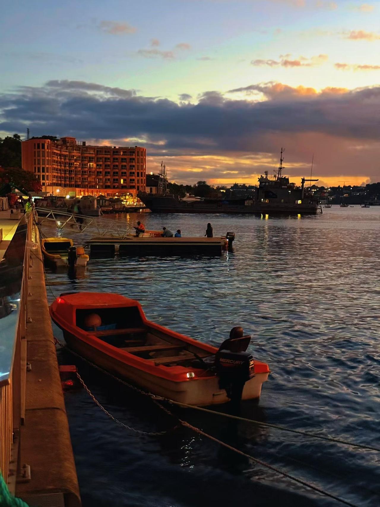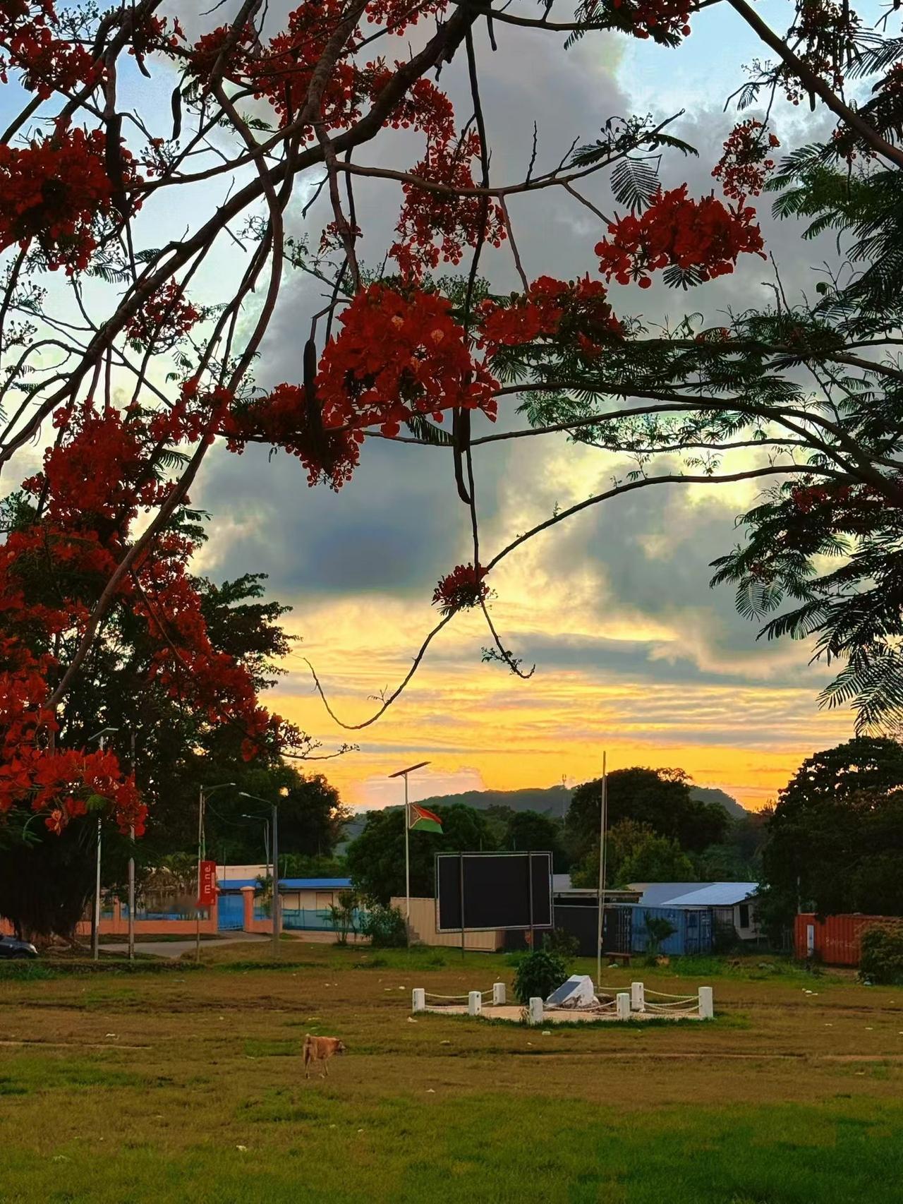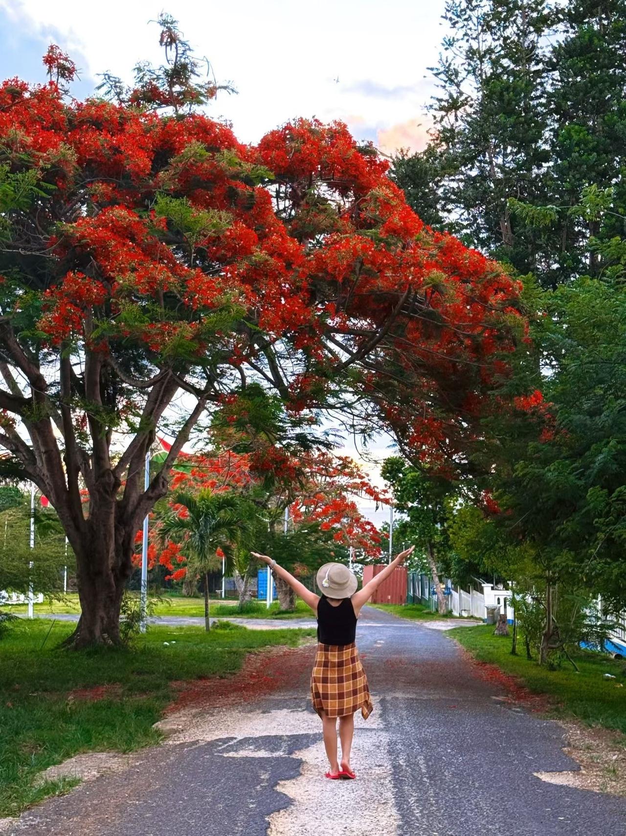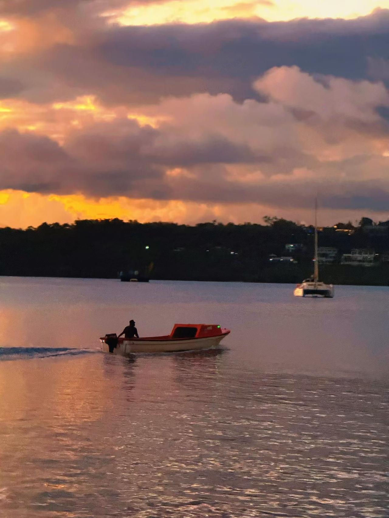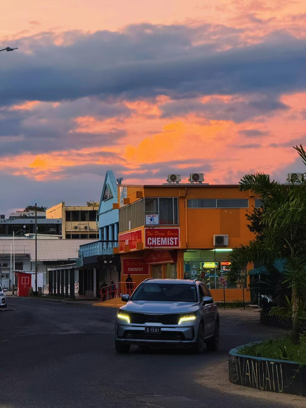 瓦努阿图| 🧡 维拉港 维拉港是一座充满热带风情的城市, 随性走走, 20分钟就走到了海边。 一路上有高大的凤凰树, 开的绚烂极了, 和当地的小孩一起玩耍, 还遇到房屋上写的中文:购买房产 遇到了一对来自中国福建的夫妻, 带着宝宝来散步, 他们在这里开酒店, 还在扩建完善中, 听着中文就觉得很亲切~ 日落时分, 看着海上的船来船往, 好治愈啊