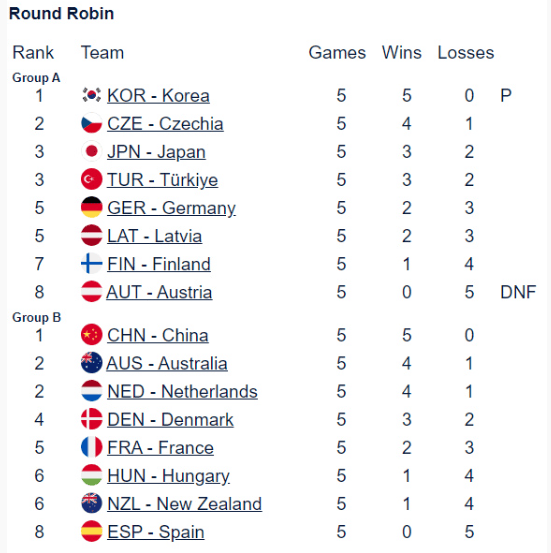 本轮B组另一场关键战,四连胜的澳大利亚6-7遭用时仅剩8秒的荷兰绝杀,两队均4胜1负。
