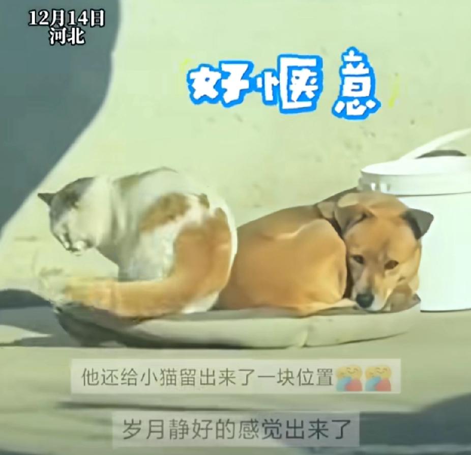 为什么有种说法叫“小懒猫”而不是“小懒狗”呢?原来老祖宗的说法都是有理有据的!12月14日,河北一只猫和一只黄狗惬意的窝在小院的一张垫子上晒太阳。 随着太阳角度的变化,它们渐渐地晒不到太阳了。狗狗忍不住起身伸了个懒腰,而猫咪还蜷缩在垫子上惬意地犯困。 狗狗观望四周,找到了阳光特别好的地方,于是用嘴将垫子拖到阳光下。猫咪自始至终坐在垫子上一动不动,后来狗狗的速度太快猫咪坐不稳,才不得已下来伸了个懒腰。 看到垫子被太阳晒到,狗狗心满意足的再次卧了上去,还特意给猫猫留了位置。而猫猫则又爬上了垫子,懒洋洋的又打起了盹。这模样生动形象的诠释了什么叫“小懒猫”!不知道大家家中猫猫也这么懒吗?我家小猫懒 河北身边事