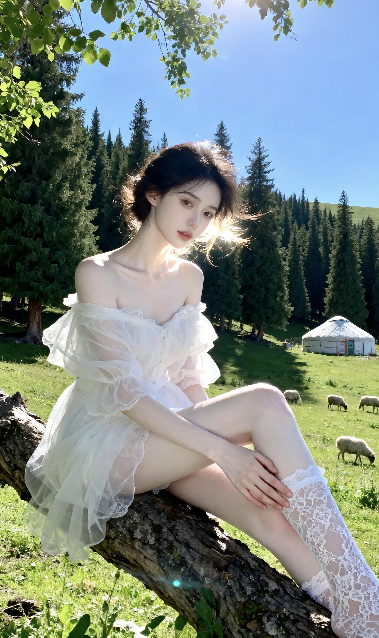 梦幻森林中的少女,轻盈纱裙与自然融为一体