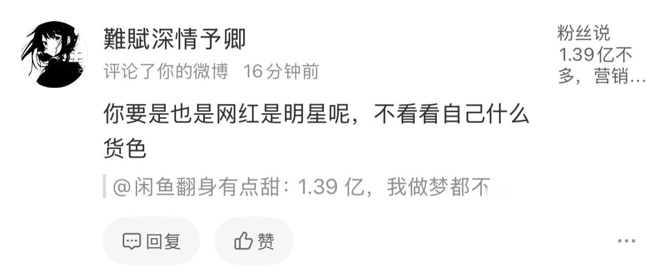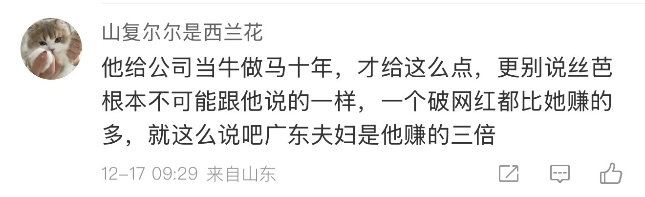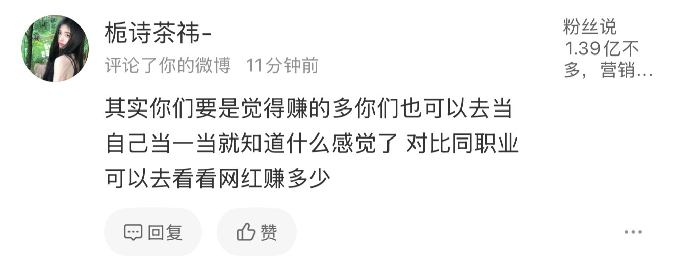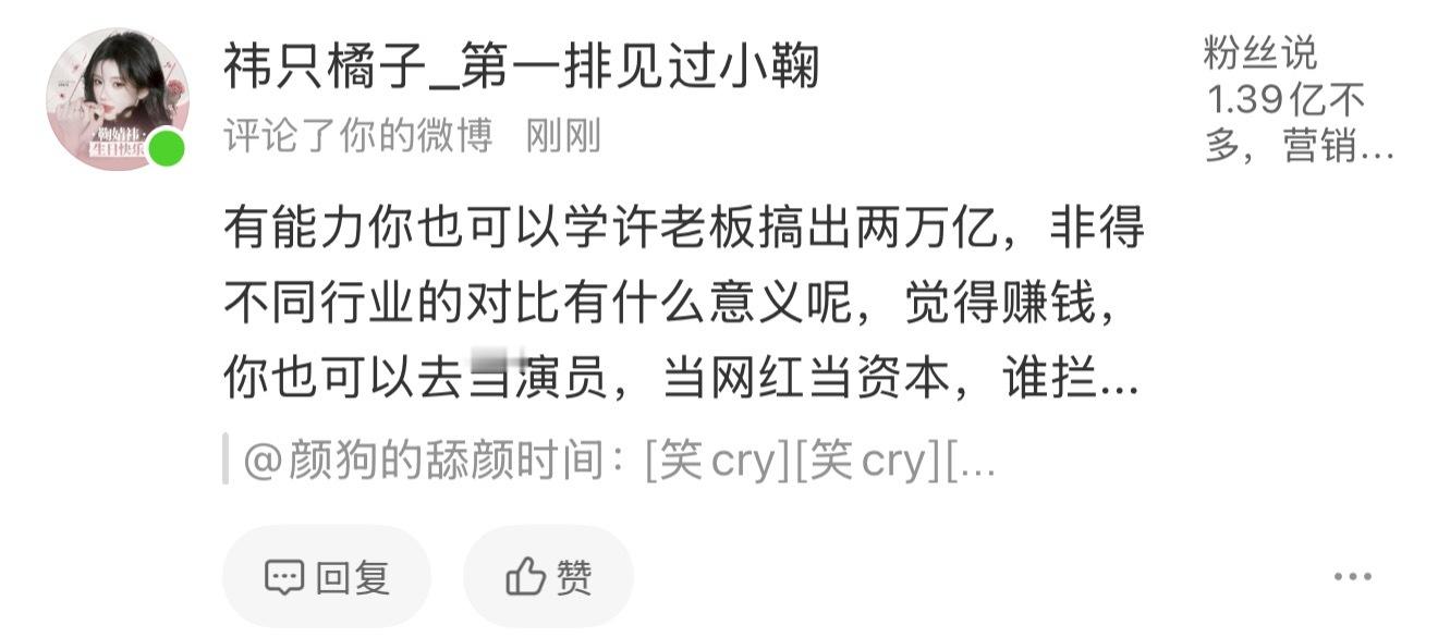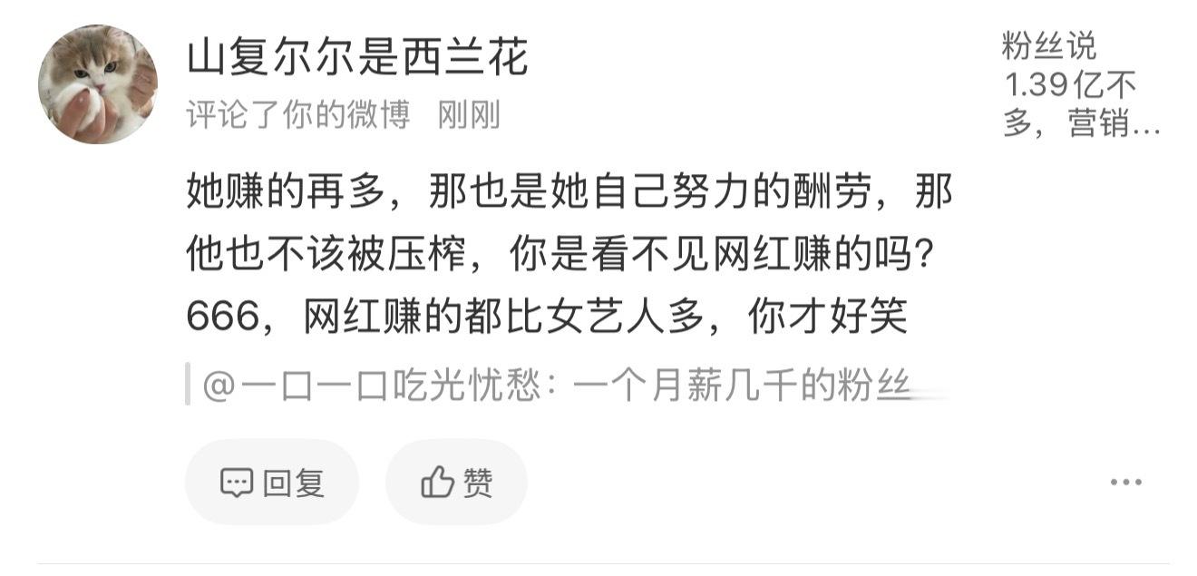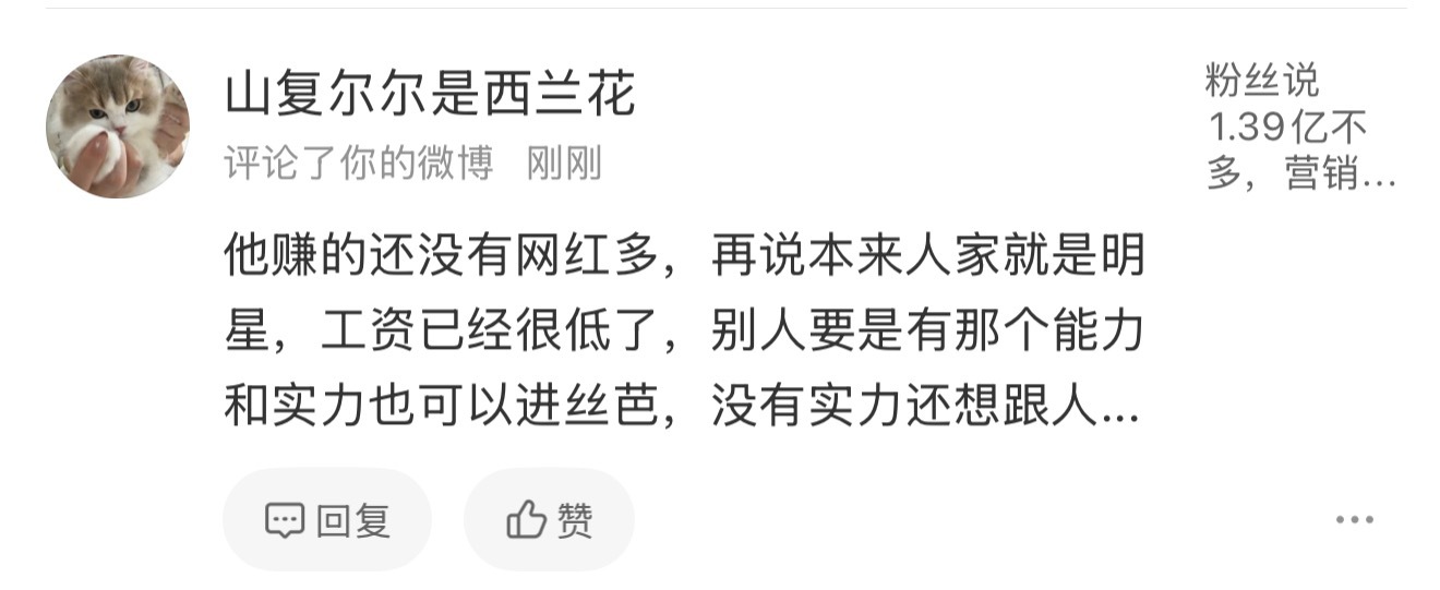 鞠婧祎粉丝年龄确实不大,每个话术都错的那么“完美”,昨天说1.39亿每月固定工资25万不多,引得更多人反感,今天更是到处吐槽贬低对立网红生怕网红群体不给鞠婧祎倒油,网红就没粉丝吗?而且她们贴的是带货主播的图(收入第一名是董宇辉),不是博眼球主播,带货主播就像销售员干业绩,卖多少挣多少,他们怎么是为社会做0贡献?她们也交税,她们也创造就业岗位,促进GDP 丝芭传媒曾与多名艺人产生解约纠纷鞠婧祎每月25万元固定工资丝芭说鞠婧祎经常报销和工作无关支出鞠婧祎宣布已是独立艺人
