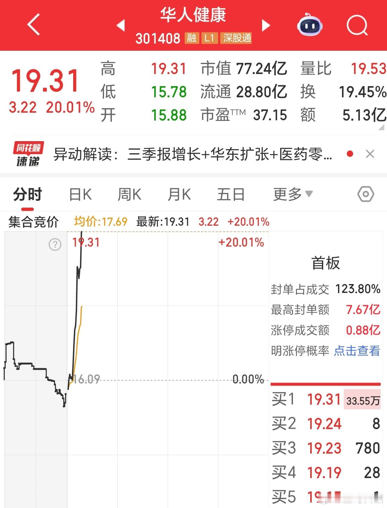 20点涨停了,这是第八天,播种就回落,但结果挺好的。