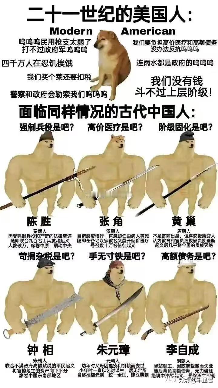 美国人过得那么惨,为啥不造反? 你看中国古代一觉得过得惨了,大家就蜂拥而至的造反,个个高呼皇帝轮流做明年的该我家…… 好吧,这也不是说欧洲只认贵族只认罗马帝国皇统,中国人历来富有造反精神。 最关键的是,美国人只为自由而造反,嗯,当年他们的国父搞美国的时候不就是这么说的吗? 现在他们肯定是自由的,虽然很可能很多人真的是一无所有了…… 不过考虑到黑蜀黎们可能接受教化的程度有点差,他们也睿智的给这帮人开了个口子。 以前是偷950美元可以没事,现在加州最新的法律都规定抢950美元,只要不伤人也不算事儿…… 那还造个鸡毛反啊? 你混的不好,你惨,那是因为你笨。点儿背不能怨社会…… 各安天命吧。