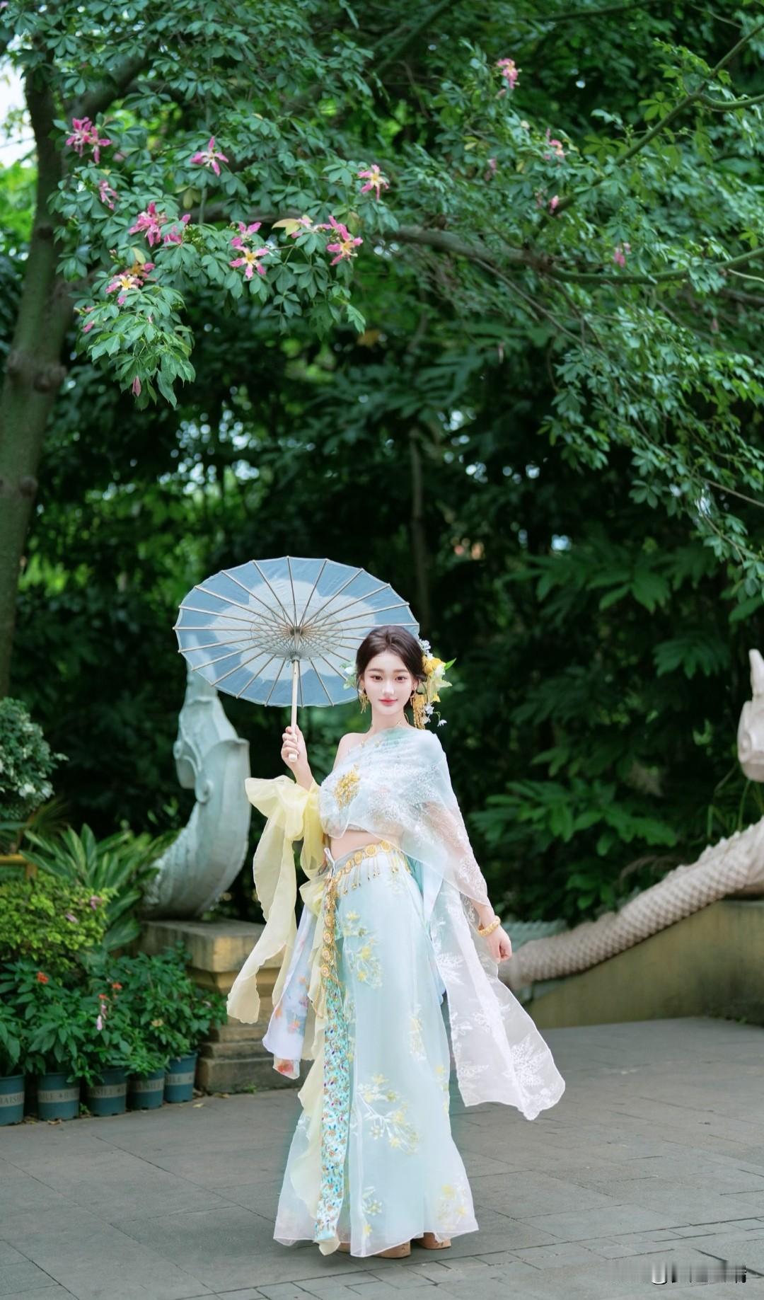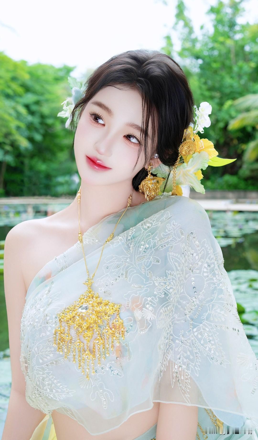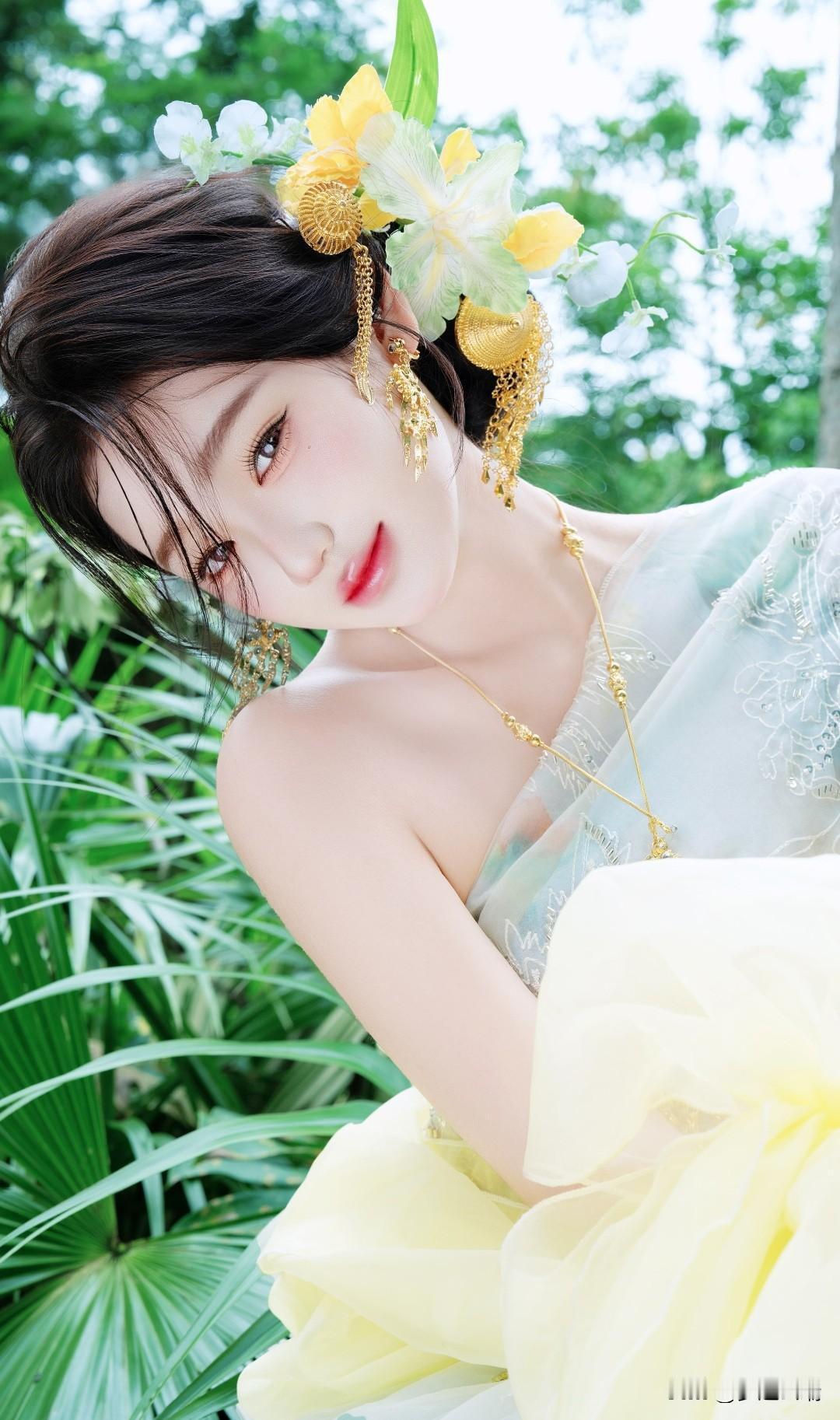 庭院中的仙子,红唇轻启,自然光洒落,美得令人窒息。