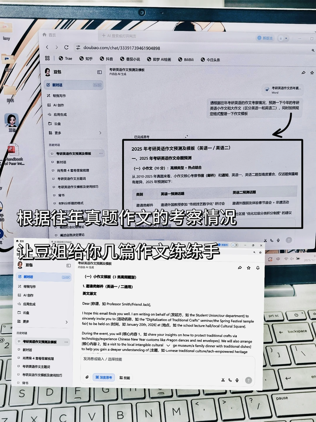 3.作文→作文是后面这几天的备考重点,练写or背写范文/模板句