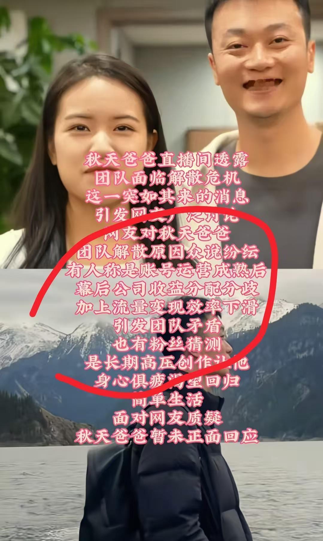现在全网最后悔的男人就是秋天爸爸了吧! 不是因为着团队回福建老家,也不是因为团队可能要解散,而是因为做错事三年后才会来,现在早已人事都不在了 说实话,最近刷不到秋天爸爸的视频,我都有点郁闷了。本来他带着团队回福建老家干活,大家还以为要搞波大的,结果好家伙,直接停更了!后来直播里说团队可能要解散,具体原因还藏着掖着,就说等调整好再讲。你造吗?这话说完,网友直接炸锅了,评论区稀了咣当全是猜测。有人说圆圆主动退出了,觉得跟秋天爸爸不合适;还有人说肯定是遇到坎儿了,不然不能这么突然。 更有意思的是,秋天爸爸停更这阵儿,他爷爷、叔叔倒是正常发视频,大伯也更了一条。网友瞅着机会,嘎嘎在评论区追问“秋天爸爸咋了”,结果大伯就回了四个字“一言难尽”。我的天,这四个字跟没说一样,直接把悬念拉满了!有个网友跟我分享,说他蹲了三天大伯的评论区,就等后续,结果啥也没等到,急得都快崩溃了。其实别人跟我说过,人这一辈子遇到的坎,都是来渡你的,就像走路绊了一下,疼归疼,爬起来就往前迈,可秋天爸爸这道坎,到底有多难跨啊? 说起来秋天爸爸和秋天妈妈,本来在南京有房有车,刚生完孩子,小日子过得嘎嘎开心。结果秋天爸爸犯了错进去了,这一下家庭直接散了三年多。秋天妈妈带着孩子,那叫一个憋屈,本来想硬扛着,后来发现实在顶不住,就把南京的房子卖了,回娘家跟妈妈一起过。说实话,这步棋走得挺对,至少有人帮着带孩子,她能出去找工作挣钱。 本来秋天妈妈也没想着做自媒体,就是偶然接触到,想记录一下自己的生活。谁知道,真实的日常反而火了,网友都愿意看。刚开始做的时候还挺难,有一次她发了条带孩子做饭的视频,有人评论说她“博同情”,她郁闷了好几天,差点就放弃了。结果有个阿姨给她留言,说“姑娘你不容易,坚持下去,我们都支持你”,就因为这条评论,她又咬着牙继续了。后来不仅自己火了,还带着在幼儿园上班的妹妹一起做,妹妹干脆辞了工作全职干,现在姐妹俩的账号都经营得杠杠的,这逆袭真的太棒了! 秋天妈妈之前在视频里说过,跟秋天爸爸在一起的时候,俩人尝试过好多工作,再累都觉得幸福,秋天爸爸还经常带她和妹妹出去玩。秋天爸爸进去后,她也明确说会等他。当时网友都盼着他们团聚,结果秋天爸爸回家一年左右,俩人居然发视频说分开了。不是吧?这反转谁能想到啊!本来还说互相帮衬,结果分开后矛盾一堆,连秋天爸爸看孩子都得走正常程序,这也太膈应人了。 后来秋天妈妈遇到了张铭文,开启了新生活,网友对此看法不一,有人觉得她终于苦尽甘来了,有人却说她不等秋天爸爸不仗义。另一边,秋天爸爸跟圆圆一起工作,大家又开始磕他俩的CP,觉得圆圆又能干又靠谱。秋天爸爸还专门回应过,说俩人只是工作伙伴,没别的关系。本来以为他俩能好好搞事业,结果现在闹出团队要解散的事儿,我晕,这剧情也太跌宕起伏了吧! 总之,秋天爸爸这事儿现在还是一团谜,团队停摆、圆圆是否退出、跟秋天妈妈的关系有没有缓和,这些都没人知道。网友吵来吵去,其实都是瞎猜。说实话,看他们的故事,我还挺有感触的。生活就像过山车,你永远不知道下一秒会发生啥。如果不开心,就干脆摆烂两天,调整好状态再出发。毕竟吗喽的命也是命,自己开心最重要,你说对不?
