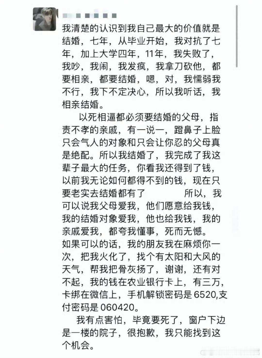 女教师新婚坠亡一楼业主要求赔偿在新婚当天决然离去,真是让人难以释怀现在太多自媒体,网红,艺人,他们做着光鲜亮丽或稀奇古怪的工作也有月薪三千或中年失业人员,过着摆烂的日子不管怎样,这给人一种感觉,你可以做自己想做的事,积极的或消极的提到教师或者历史给人一个正统的传统形象,父母也在企事业单位压力为三倍,和男方有矛盾出现退婚传言,压力加两倍没有人知道哪个是骆驼身上的最后一根稻草只知道前面是已经闹矛盾几近退婚的夫家后退是一直逼婚的父母中间是要体面的工作,她以往做的,是喜欢新中式服饰,略表不同女教师新婚坠亡一楼业主要求赔偿
