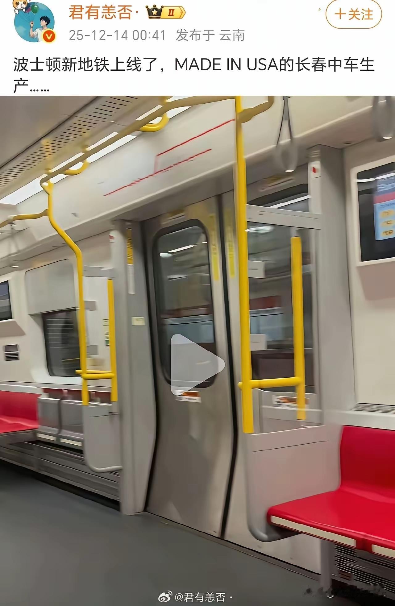 美国复兴制造业成功了[赞]波士顿新地铁就是Made in USA。 我们一定要警惕啊。[我想静静] 我就是有点好奇,美国什么时候搞到地铁车辆生产技术的呢? 这可是轨道交通技术。 以往美国的火车一年不脱轨几次都对不起美国这两个字。 现在居然能制造地铁了,税宗牛逼![偷笑] 点右上角关注我,我们一起去看这个魔幻的世界