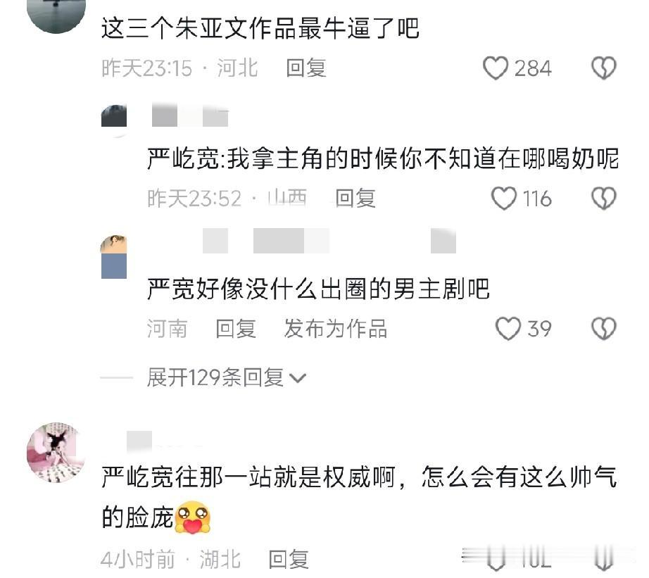 朱亚文和严屹宽因为国剧盛典的同台,引发了网友对他俩的作品讨论。 其实从站位就能