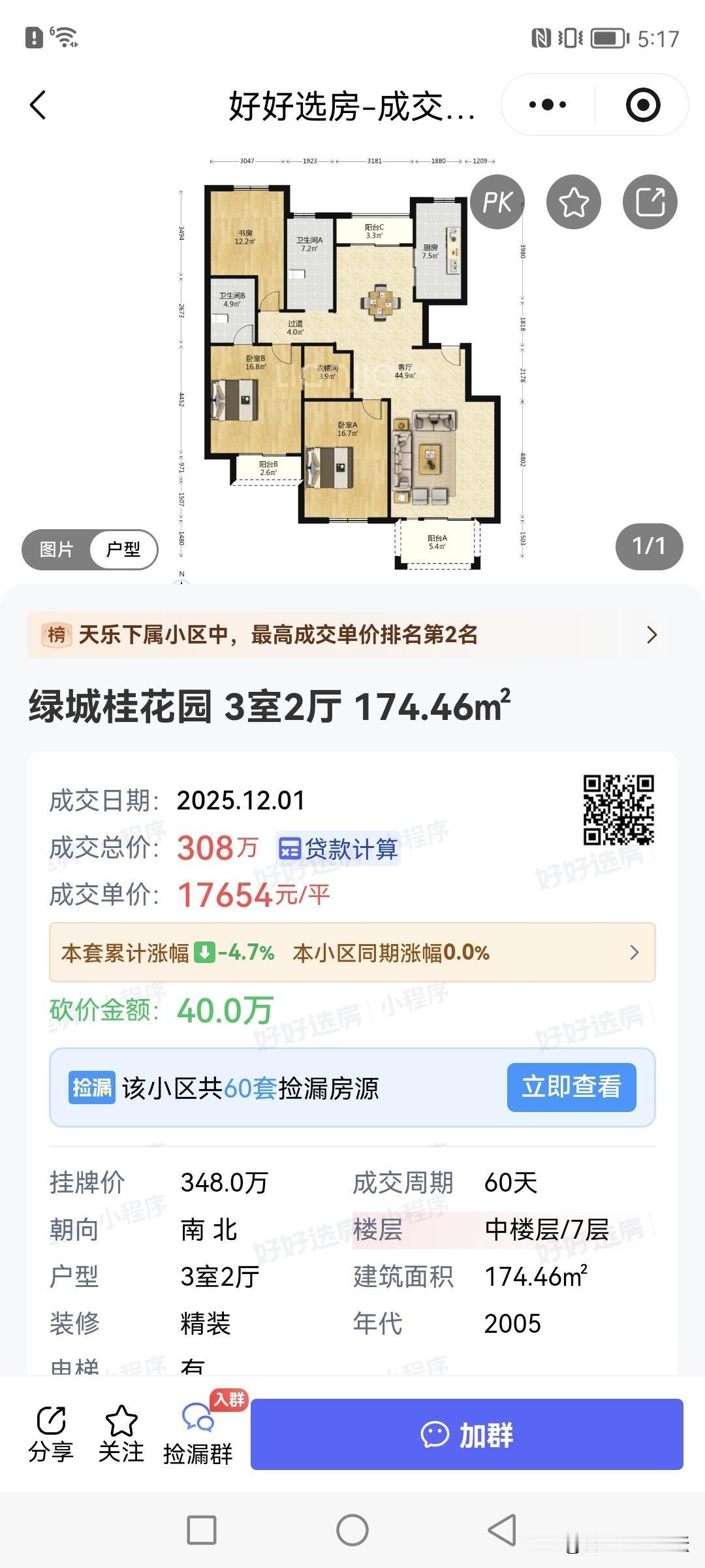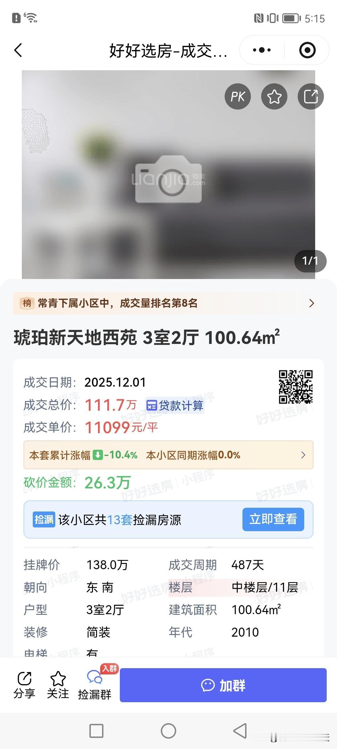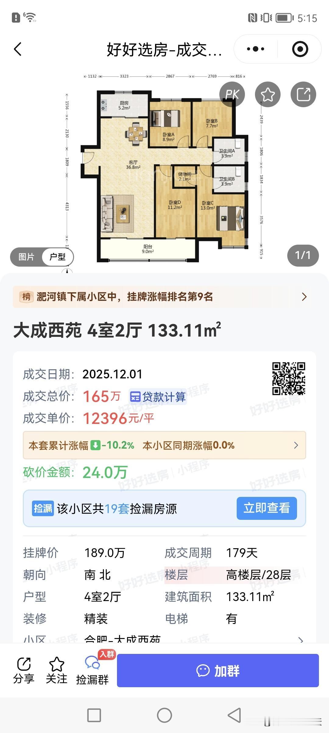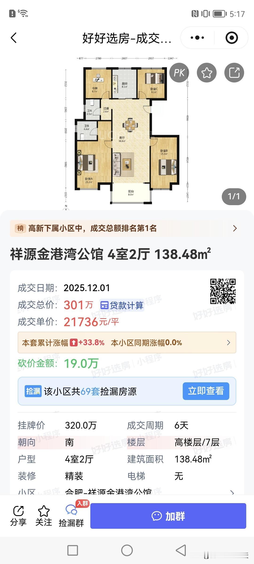 这么好的位置,也要亏大几十万。合肥经开区皖投最好的位置次新房,也是刚交房,成交一