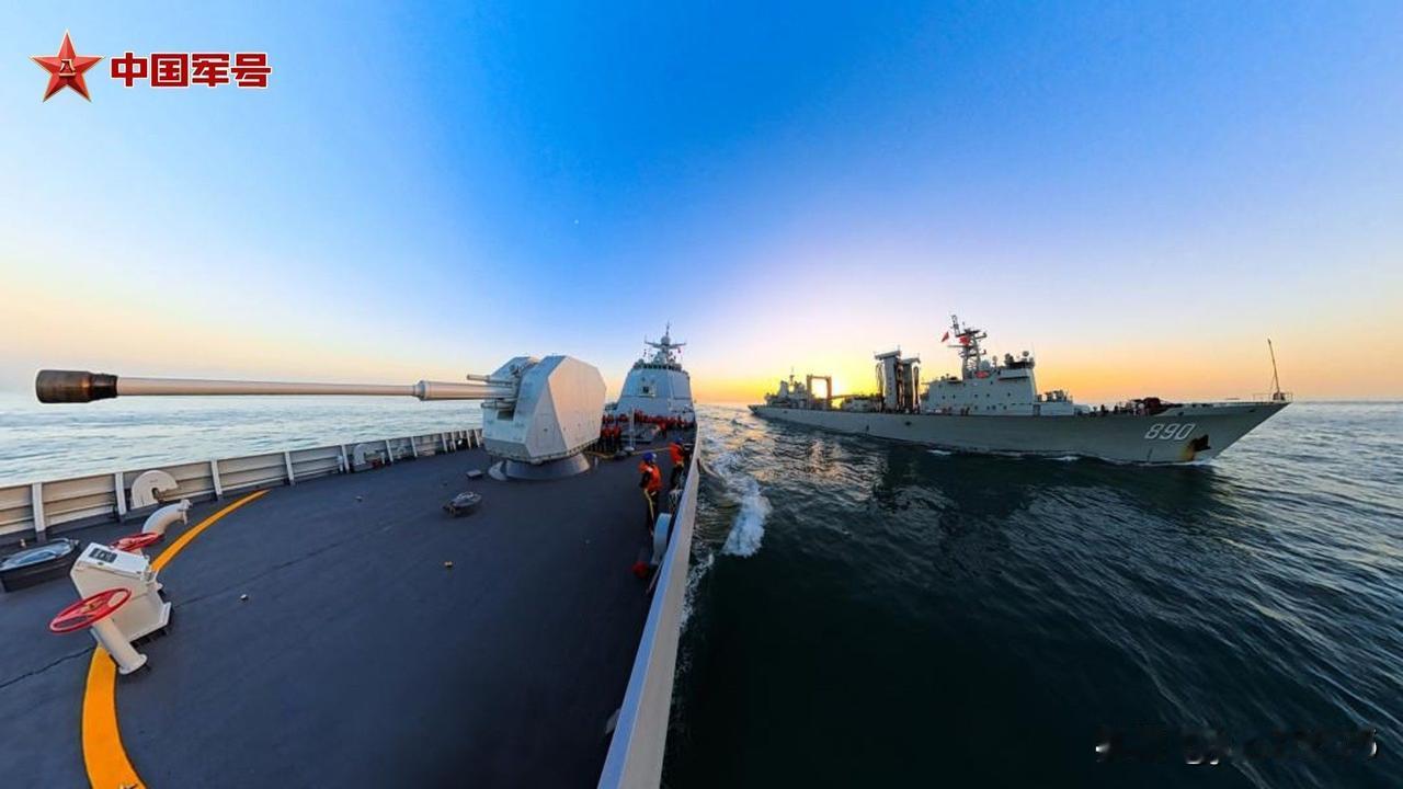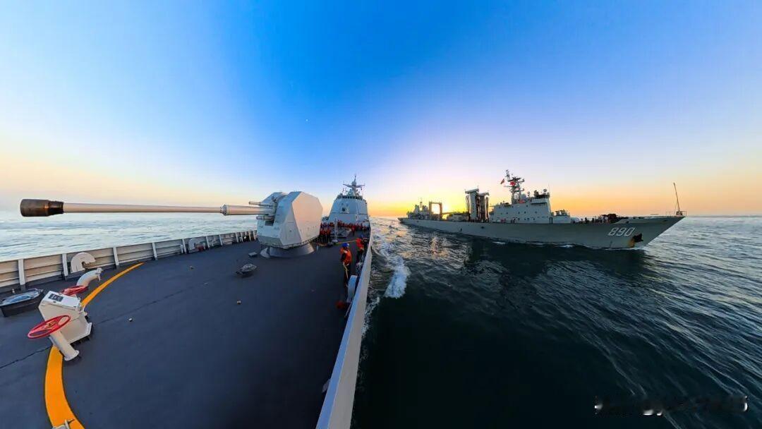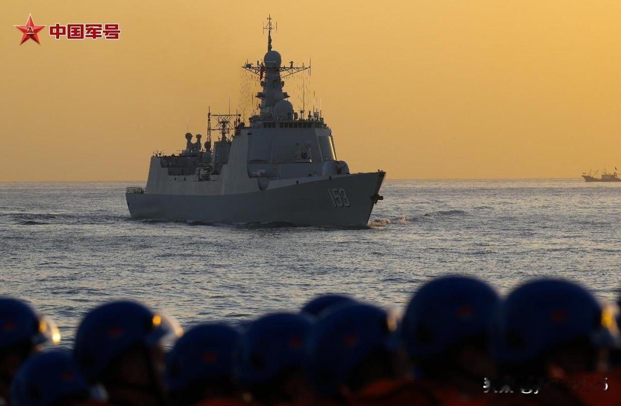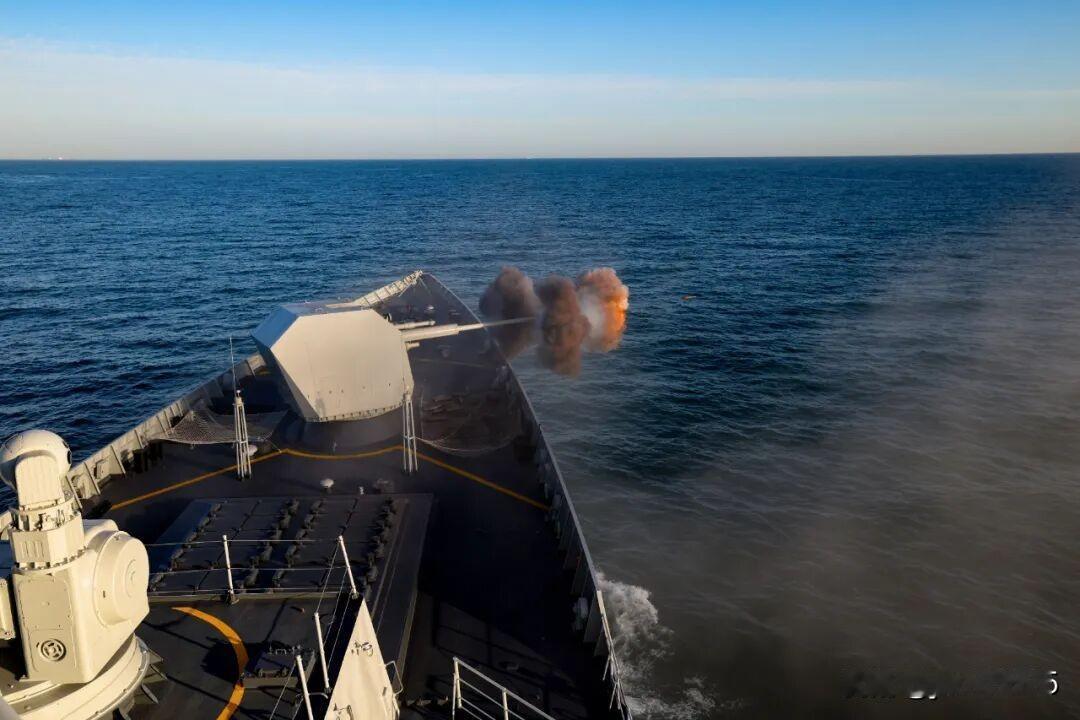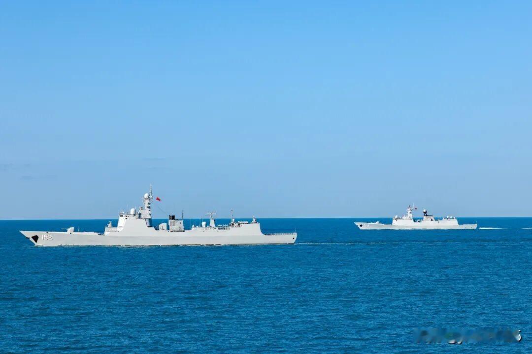 近日,东部战区海军某驱逐舰支队出动多艘驱护舰组成编队进行海空联合实战演练。驱逐舰
