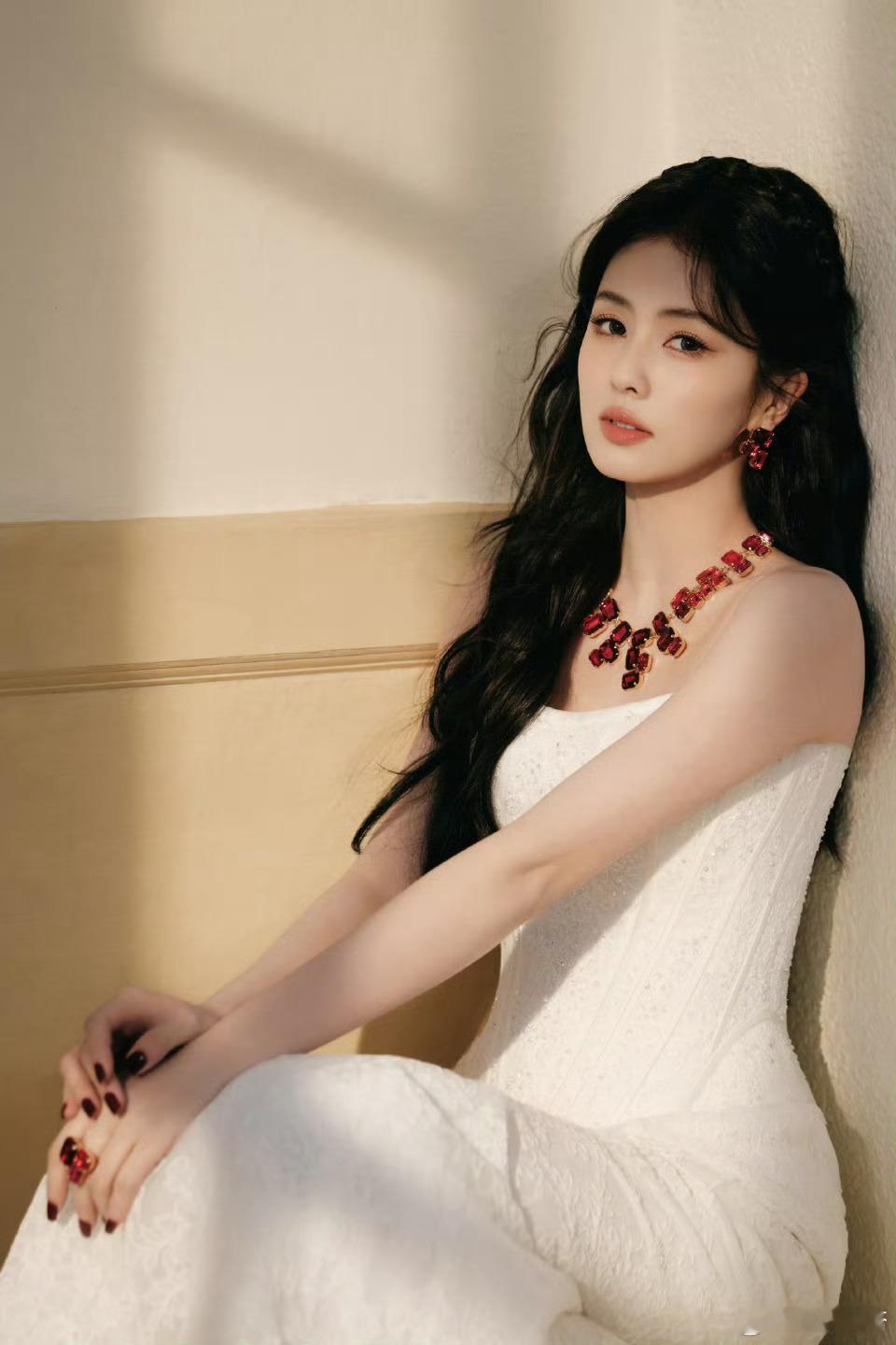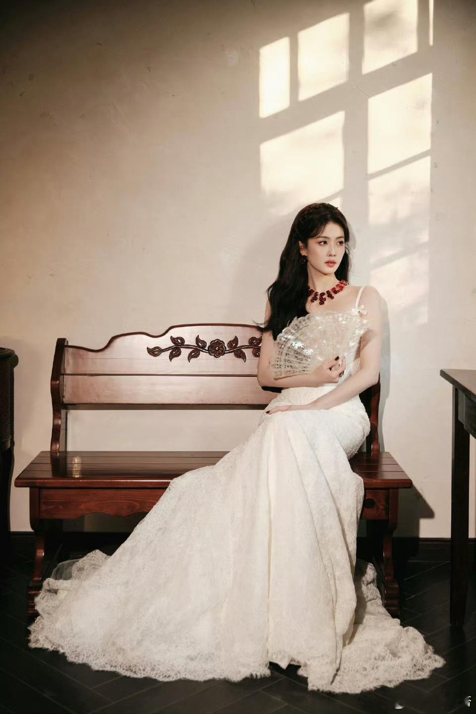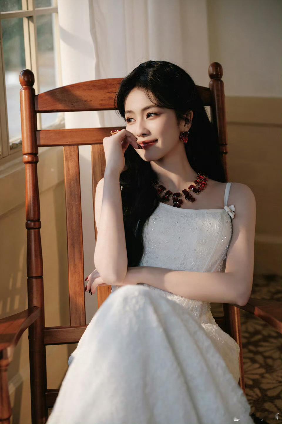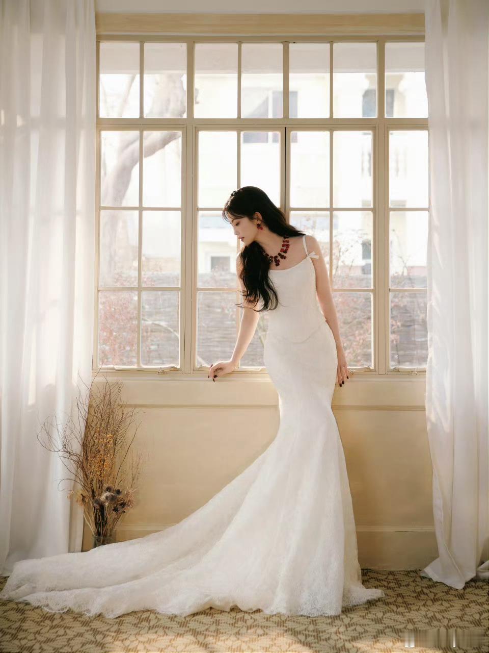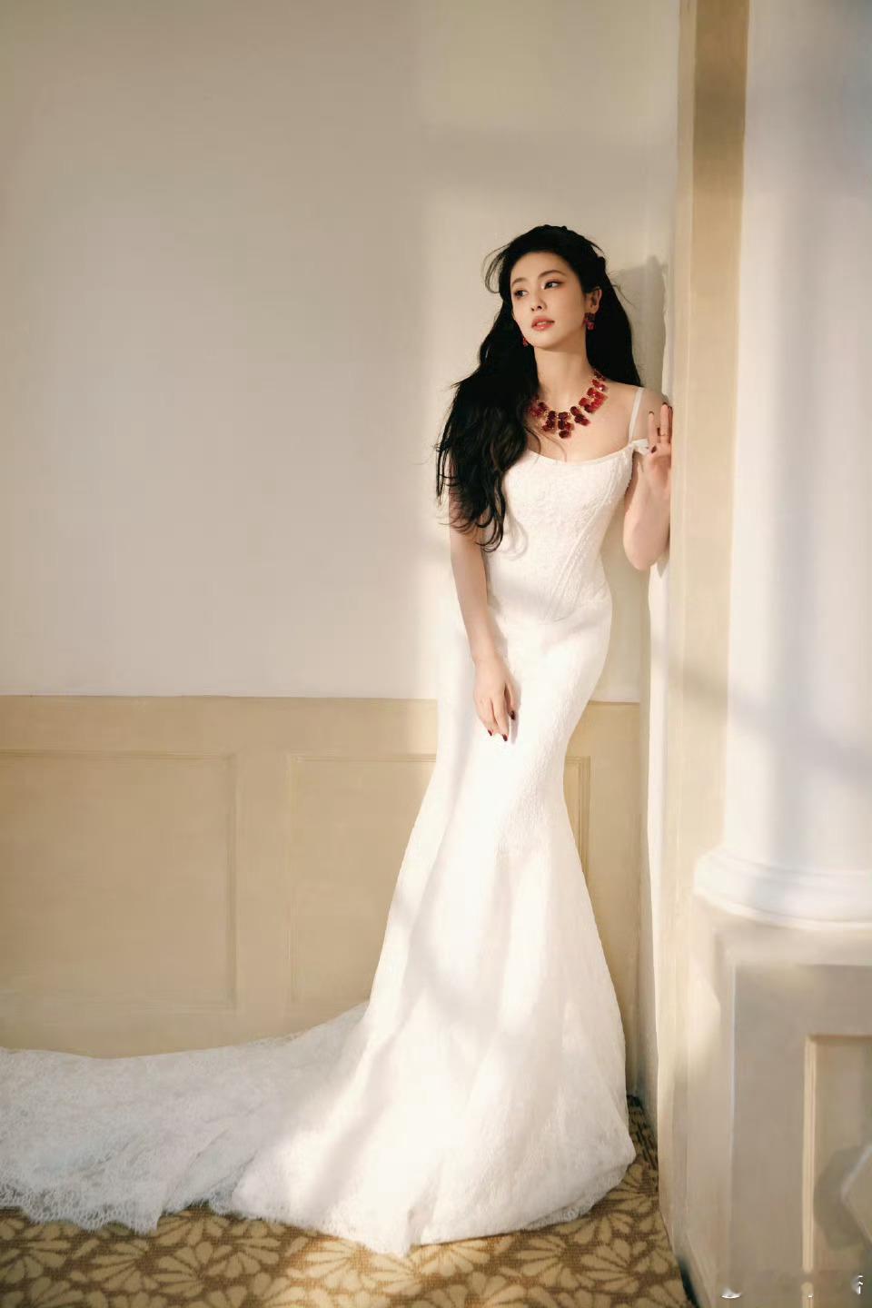 白鹿吊带拖尾裙白鹿空降思念直播哇撒!!介是白鹿今晚直播的造型嘛白鹿