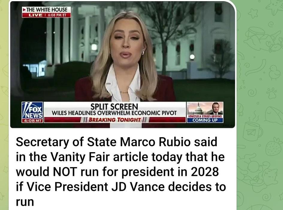 [彩虹]卢比奥表态:若万斯参选2028总统大选 自己将退选并支持 卢比奥今日在《名利场》的文章中表示,若副总统J.D.万斯决定参选2028年总统大选(🗳️,他将不会参与角逐。 他称:“倘若副总统万斯决定投身2028年竞选(2028 campaign)🏃,他定会成为共和党总统候选人(presidential nominee)🎯,而我将作为他的支持者。”