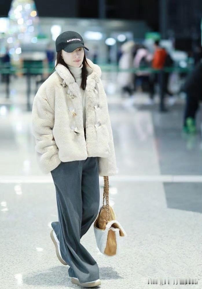 董洁这套真是把“贵气松弛感”玩明白了! 米色皮草一点不显臃肿,软糯光泽衬得人好温柔,搭配灰色阔腿裤瞬间压住了浮夸感。 垂坠裤腿走路带风,那种慵懒又精致的劲儿太戳人了! 她真的好会选材质对比,皮草的华贵和针织的休闲碰撞得恰到好处,日常穿也完全不突兀,审美真的在线!