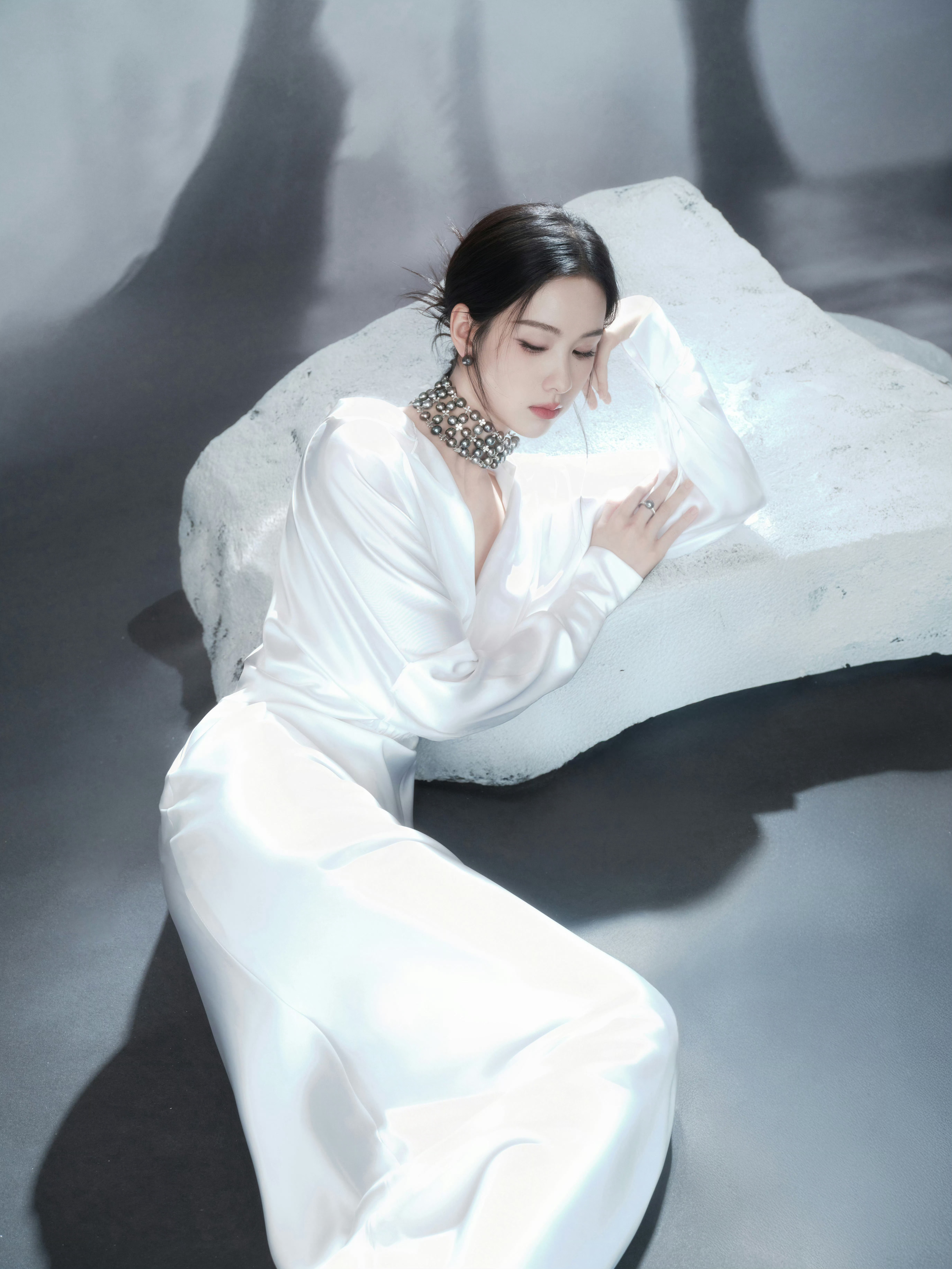 陈都灵 一袭白缎长裙勾勒出利落线条,领口的设计添了几分慵懒,颈间的饰品又衬出精致细节。在东方美学的氛围感里,于冷冽与温柔之间找到平衡,每一处留白都是恰到好处的诗意~