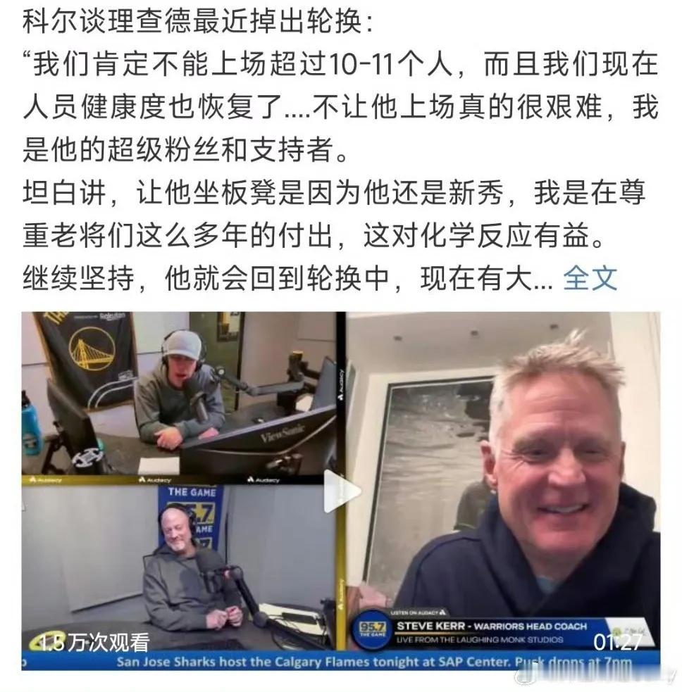 说白了让谁去做教练也一样 球队第五人到第十五人水平拉不开差距 一堆底薪后卫+花了大钱的锋线又菜到离谱,dnp像小库里理查德这水平的没啥可惜。库+追+霍+巴,四大主将伤伤停停基本不打背靠背,波姐+波斯特+穆迪+梅尔顿+库明加+理查德+斯潘塞+佩顿+桑托斯+tjd+小库里,这些人根本无法做到一上场就稳定有贡献,全部都得视当天手感状态,再来决定要不要加时间,球队前四老将无法保证出勤,球队第五到十五人没有档次差距,这个阵容让谁来执教都很难破局啊。