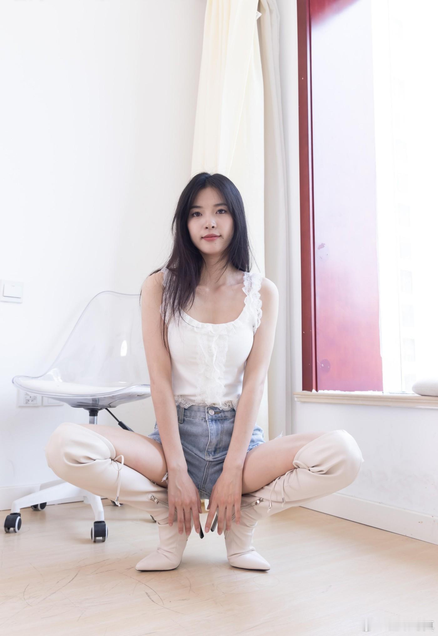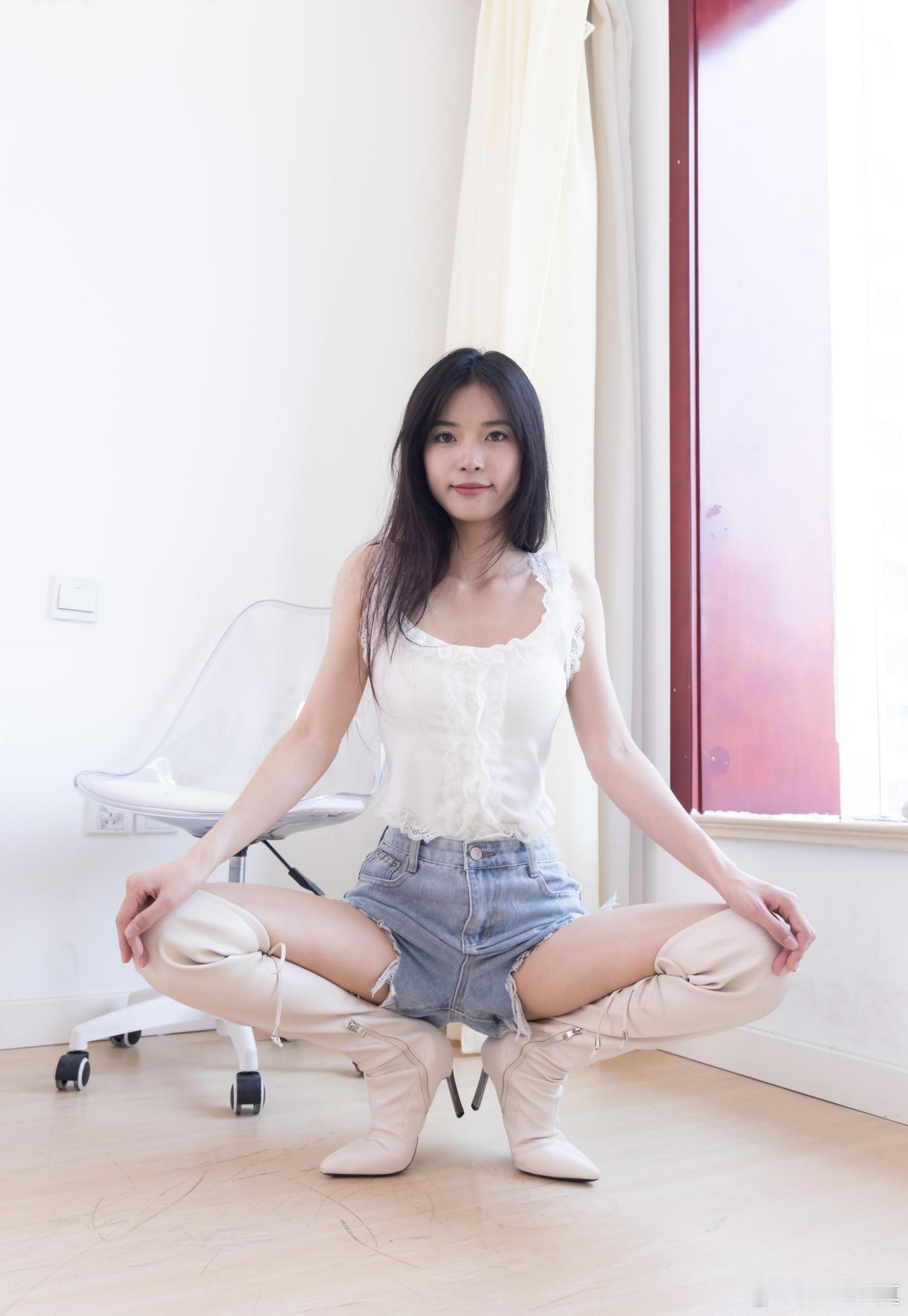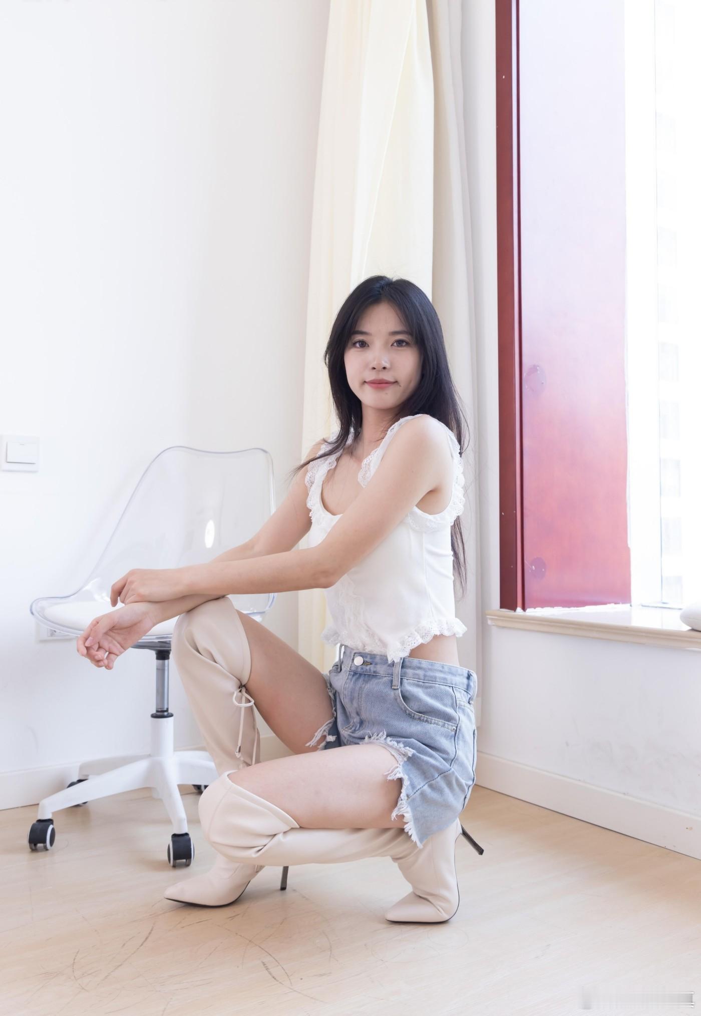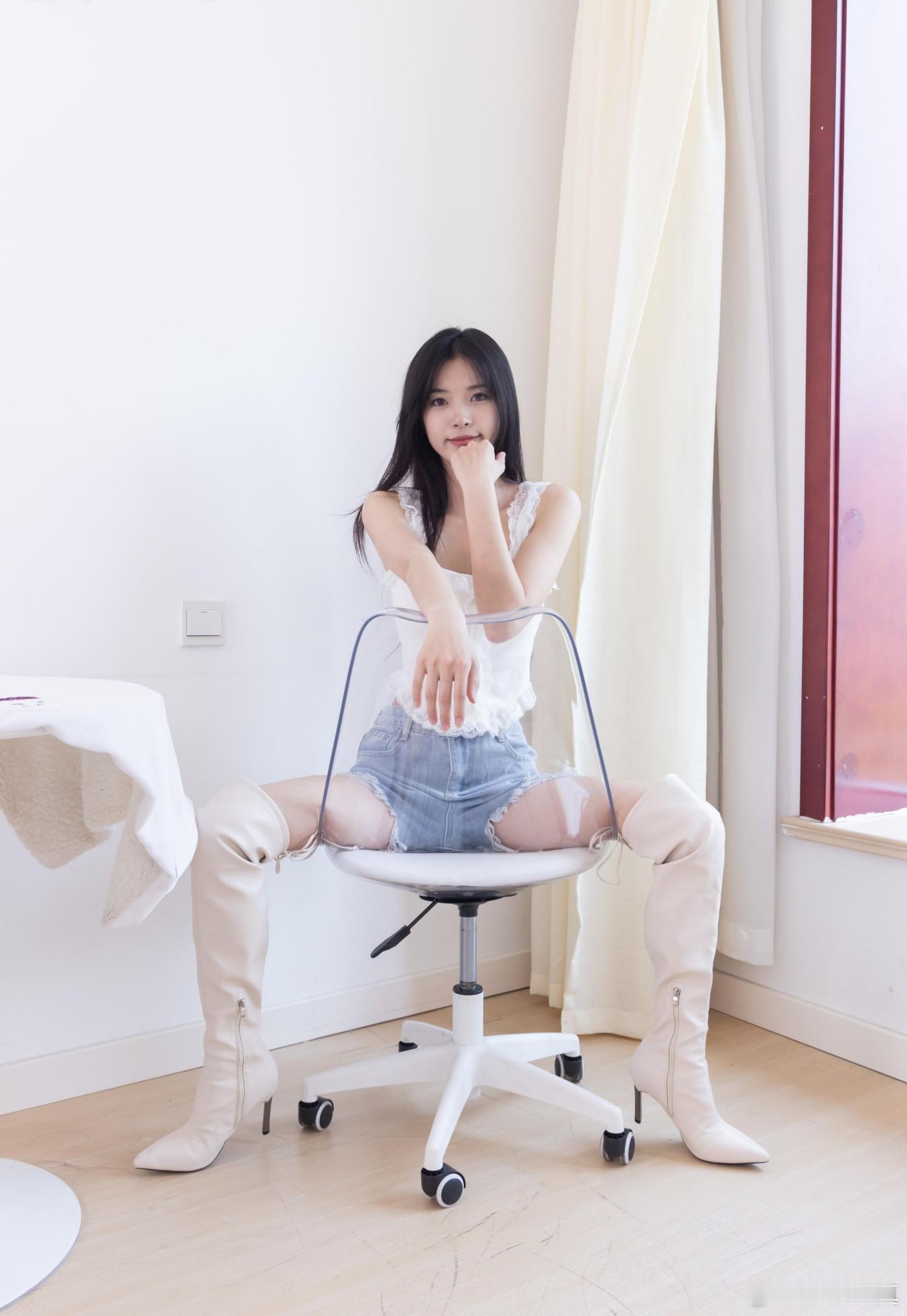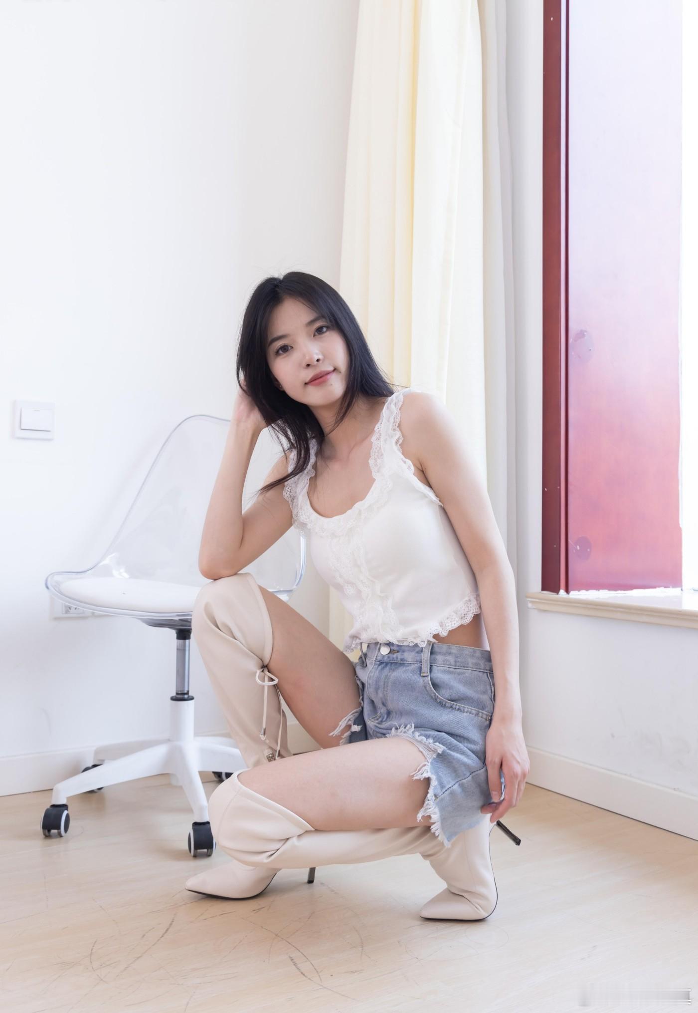 茯苓丨牛仔短裤白色过膝长靴[143P]