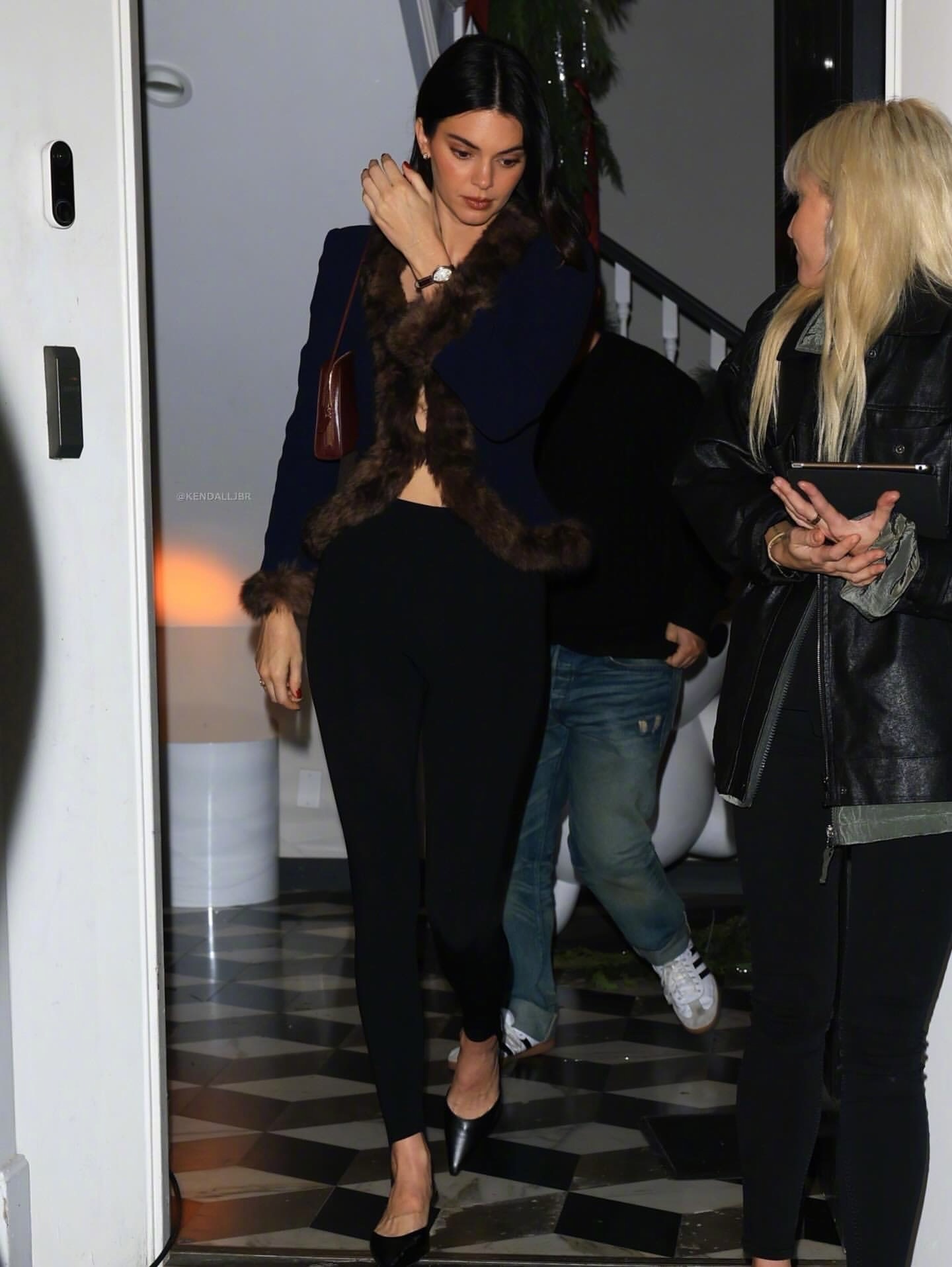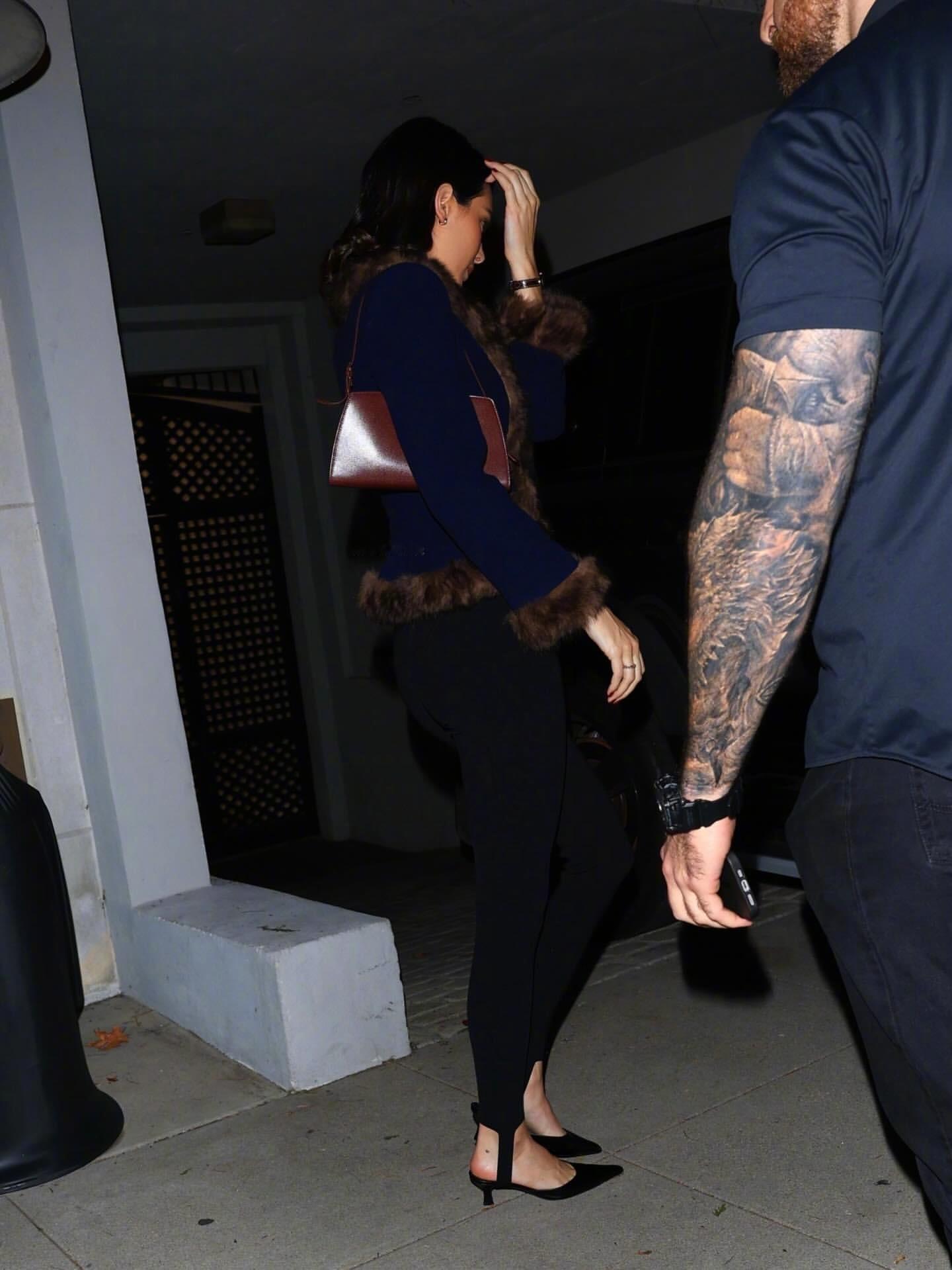 肯豆Kendall Jenner与海莉及贾斯汀比伯 一起现身布伦特伍德的一场派对。海莉以全新的短款波波头亮相,选择了带有“淑女风”的优雅造型:剪裁利落的西装外套搭配中长裙,再以高跟凉鞋和一只毛绒迷你包点缀,作为造型亮点。肯豆的造型中同样出现了毛绒元素,身穿Valentino 毛皮饰边外套和Leset Rio 脚镫裤,脚穿The Row穆勒鞋,肩背The Row 包。比伯则依旧是一身宽松街头风造型。米拉服饰解析