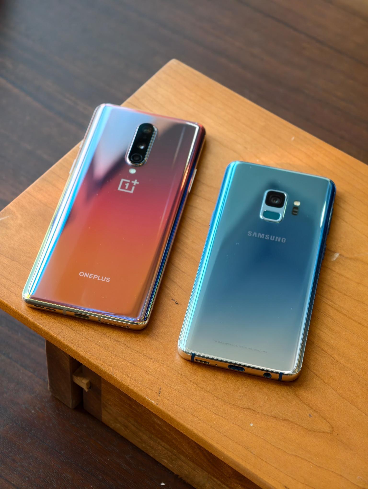 前几年这种晶莹剔透的渐变色玻璃后盖,现在不流行了来看看两台代表作:一加8银翼,三星S9冰蓝