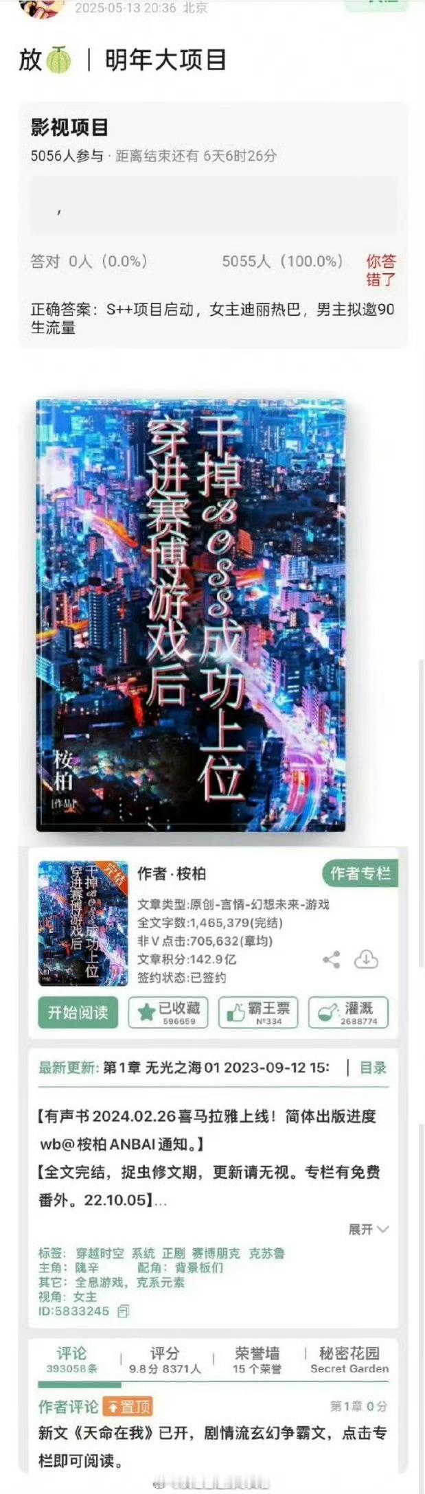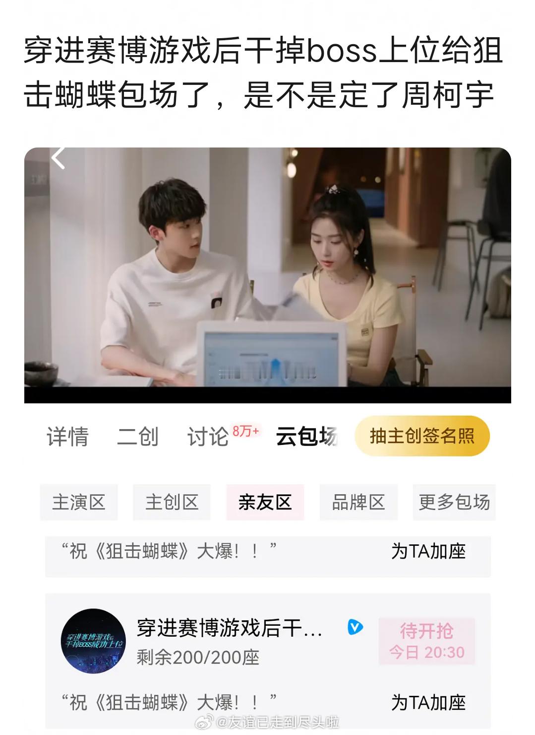 超级S+《穿进赛博游戏后干掉boss成功上位》好像是迪丽热巴和周柯宇的饼热巴和嘉行续约了,内娱找不到比她更适合隗辛的女演员;赛博游戏也给周柯宇的《狙击蝴蝶》包场了。这个阵容怎么样?