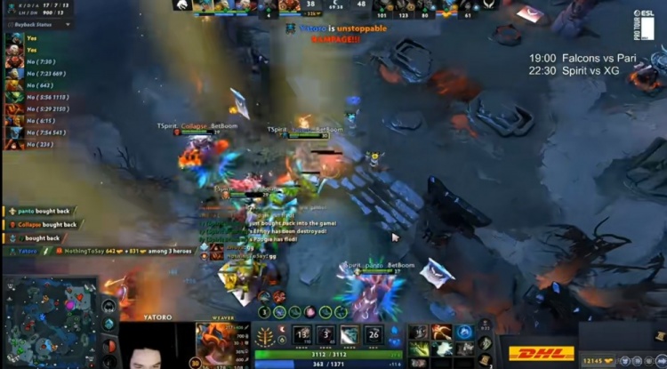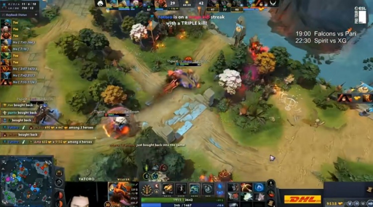 天辉Spirit:rue赏金猎人、Collapse斧王、Larl卡尔、panto百戏大王、Yatoro编织者