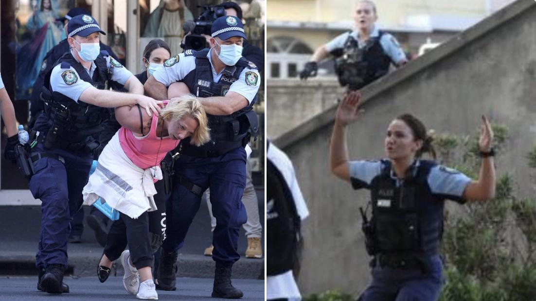 左图:澳大利亚警方在新冠疫情期间对待未戴口罩的公民态度强硬。 右图:澳大利亚警方