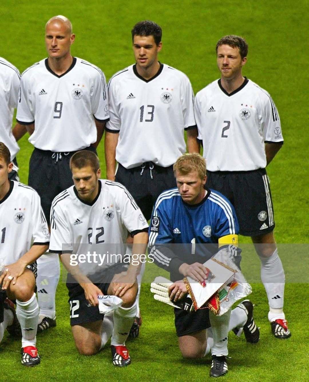 德国队 🇩🇪⬆️ 迪特马尔·哈曼、克里斯蒂安·齐格、克里斯托弗·梅策尔德、卡斯滕·扬克尔、米夏埃尔·巴拉克、托马斯·林克⬇️ 卡斯滕·拉梅洛、贝尔恩德·施耐德、米洛斯拉夫·克洛泽、托尔斯滕·弗林斯、奥利弗·卡恩📌 凭借前锋米洛斯拉夫·克洛泽的惊艳表现,德国队以8:0大胜沙特阿拉伯队(克洛泽独中三元)。📌 彼时德国队正处于球员新老交替的过渡期,球队由前前锋鲁迪·沃勒尔挂帅执教。📌 在经历了一届表现糟糕的2000年欧洲杯,又在预选赛中1:5惨败英格兰队后,德国队不得不通过附加赛才获得正赛资格。📌 这支本就存在技术短板的球队,又因梅赫梅特·绍尔和塞巴斯蒂安·代斯勒的缺阵,在赛事中的前景变得扑朔迷离。