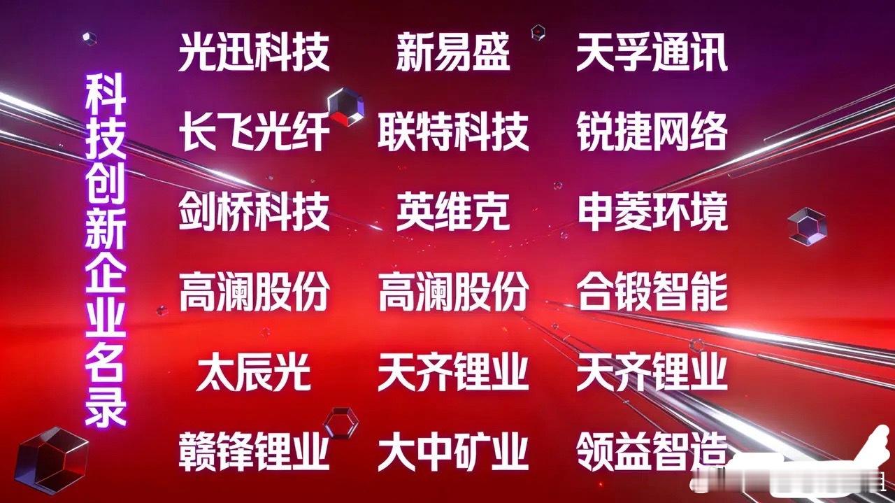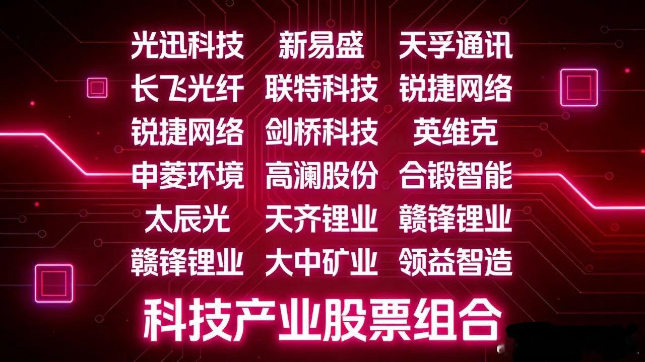 12月17日A股最强主线出炉!四大方向盯紧了今天A股的核心主线清晰明了,这四大赛道直接扛起领涨大旗,相关龙头股赶紧收藏!1. 通信设备联特科技、鼎通科技、通鼎互联、光迅科技、长飞光纤、天孚通信、剑桥科技、中天科技、太辰光、锐捷网络2. 能源金属(锂矿)天华新能、盛新锂能、中矿资源、西藏矿业、天齐锂业、赣锋锂业3. 液冷服务器奕东电子、华光新材、同飞股份、鼎通科技、中石科技、科创新源、飞龙股份、光迅科技、大元泵业、英维克、川环科技、高澜股份、润禾材料、申菱环境。4. CPO概念+光模块奕东电子、炬光科技、生益电子、德福科技、中石科技、光迅科技、中瓷电子、中富电路、新易盛、天孚通信、易天股份!大盘企稳迹象明显,可以适当关注,控制好仓位,积极参与。欢迎关注我!也可在评论区分享你的好股,共同进步!
