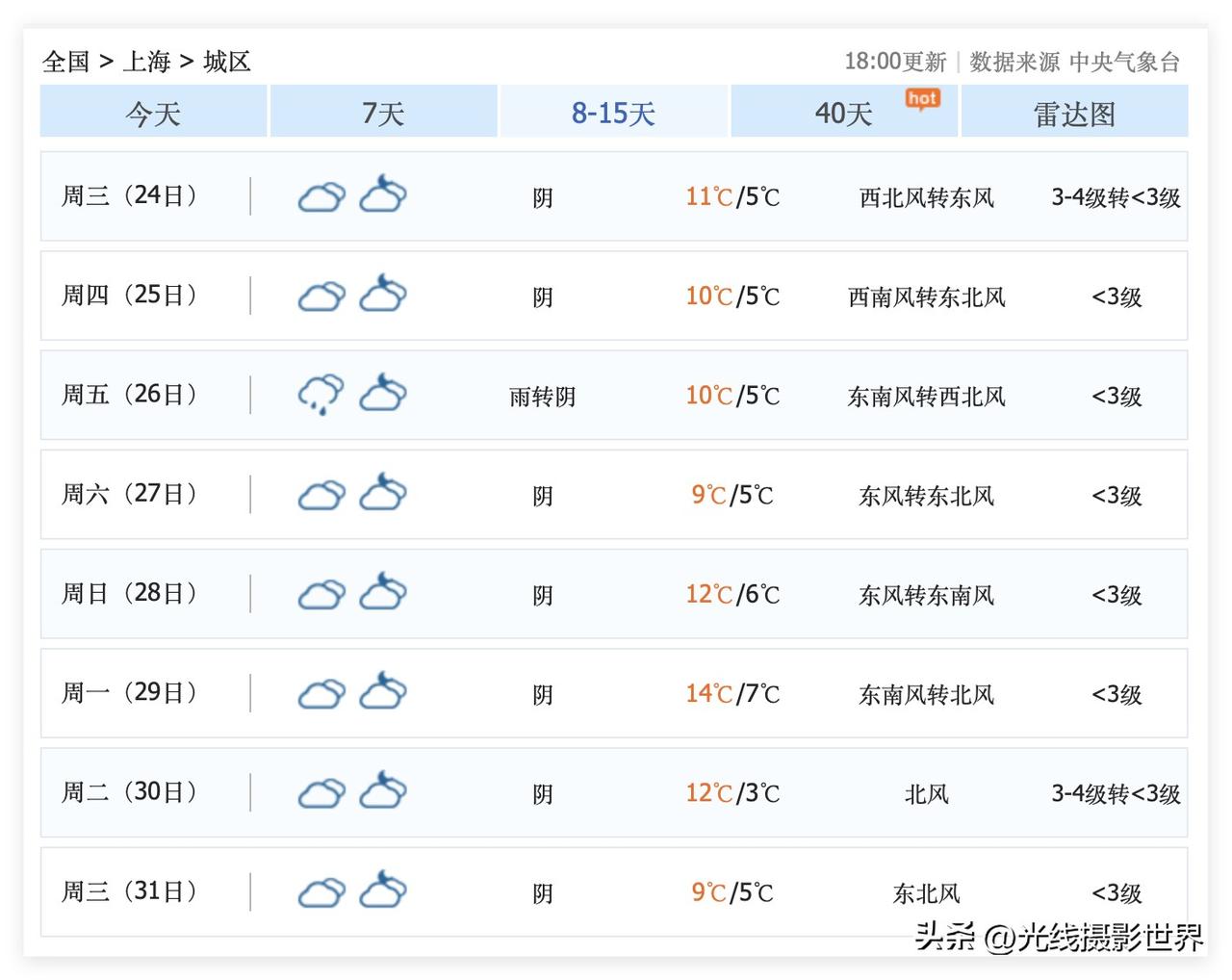 哎!好伤心,上海市的暖冬和大太阳,即将结束啊!虽然12月18日到20日,上海最高气温20度,非常温暖,但是……12月21日到31日,上海市,阴雨连绵,断崖式降温之后……多次降温……降雨降温……上海的太阳,要去流浪啦! 12月20日,上海阴天! 12月21日,上海小雨转阴,气温暴跌,气温腰斩,断崖式大降温啊! 在经历了12月21日的骨折大降温之后……上海市,再也难以回暖到20度啦! 接下来的长三角,上海,南京,苏州……哎! 总体来说,2025年11月12日,上海,应该是偏温暖的,应该是不冷的,大家觉得呢?!