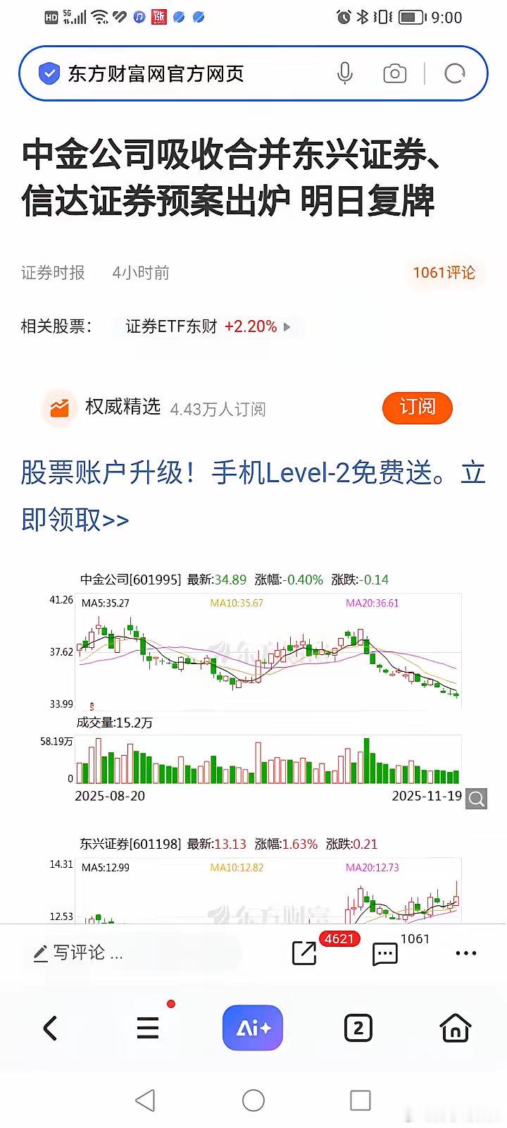 没想到中金公司明天就复牌了。比国泰君安重组海通证券快了正好一周时间。而且中金公司的三合一购并重组真的不一般,是真正的强强联手,优势互补。国泰海通的并购重组国泰君安业绩还行,而海通证券业绩是亏损的,所以只能算强弱组合式重组。而中金、东兴、信达各有所长,各有所优,必将大放异彩!咱大胆预测一下,中金公司复盘很可能五个板起步。大家觉得呢?