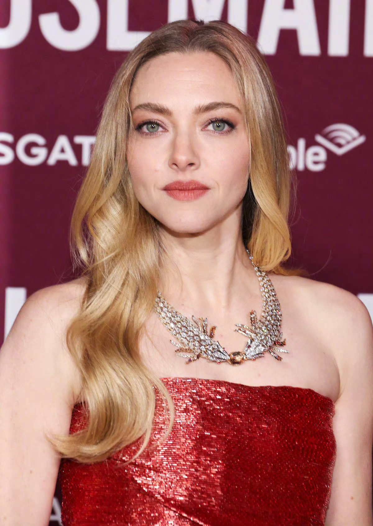 Amanda Seyfried 新片「女佣」洛杉矶首映礼一袭抹胸红裙配Tiffany & Co.高级珠宝
