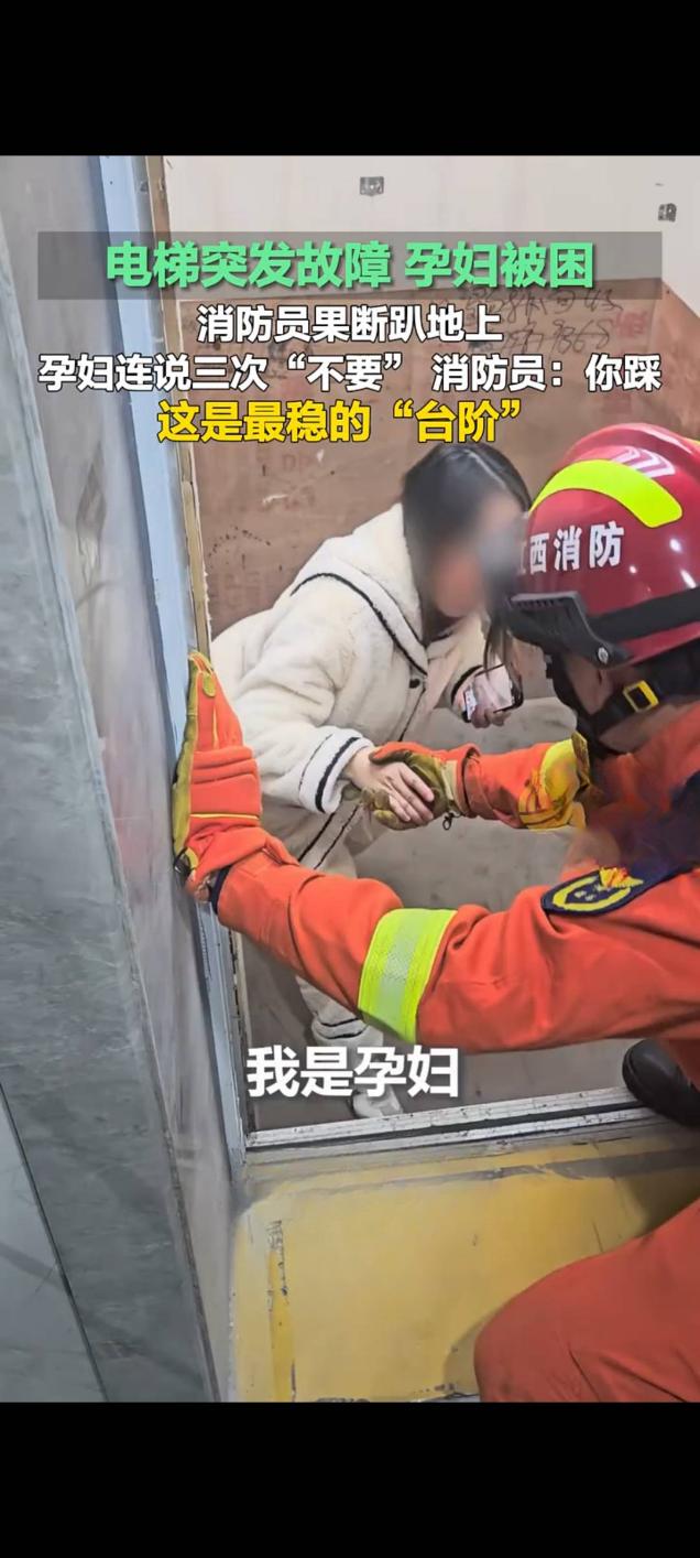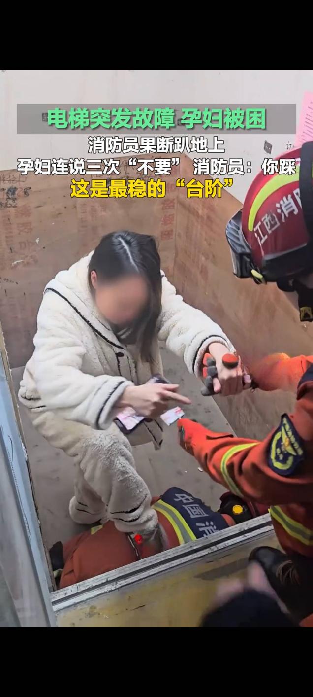 孕妇被困电梯间 消防员俯身化“台阶”成最稳依靠 近日,江西萍乡某小区发生惊险一幕:一名孕妇因电梯故障被困。消防员赶到现场时发现,电梯轿厢底部与楼层地面存在近70厘米的高度差,这对行动不便的孕妇来说难以跨越。 紧急关头,消防员陈汝泉没有丝毫犹豫。他迅速跳入轿厢,毫不犹豫地双膝跪地、俯身趴下,用自己的背部为孕妇搭起了一座坚实的“人肉台阶”。为了消除孕妇的紧张,他轻声安抚道:“你踩,放心踩!”在周围人员的鼓励下,孕妇小心翼翼地踩上这“最稳的依靠”,最终被安全接应出电梯。 这段暖心视频迅速在网络上传播,获得数万网友点赞,更被人民日报等媒体转发。网友们纷纷留言,称这是“最帅的俯身”,赞扬消防员用行动诠释了“人民至上”的承诺。消防员陈汝泉事后表示,自己当时唯一的想法就是确保母子平安,防止二次意外发生。一次平凡的救援,展现了不平凡的担当与温柔。电梯困境 电梯困人救援
