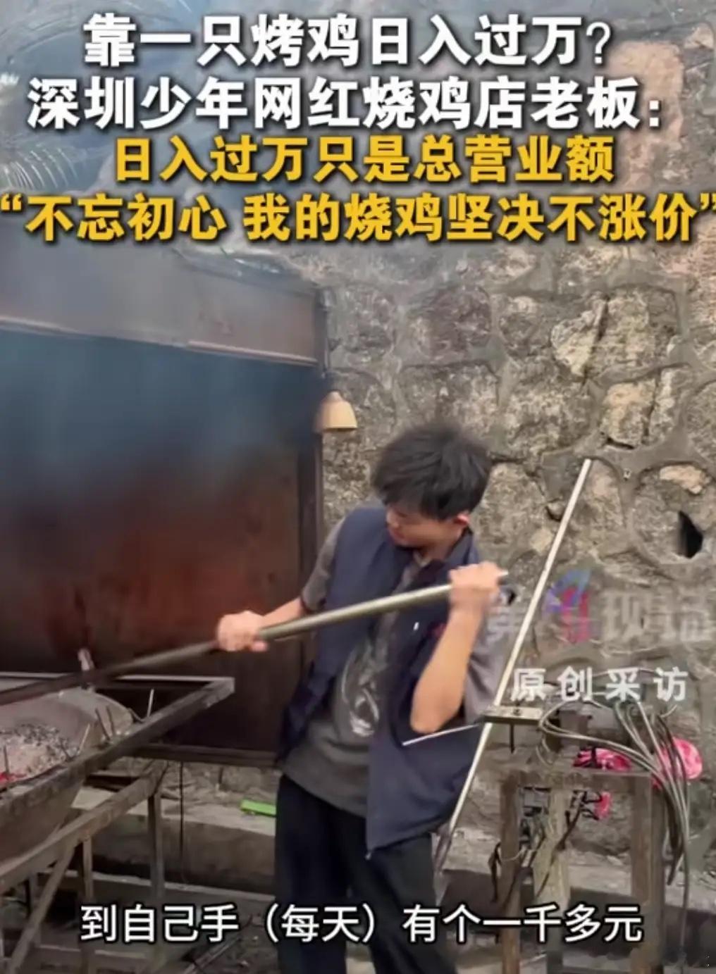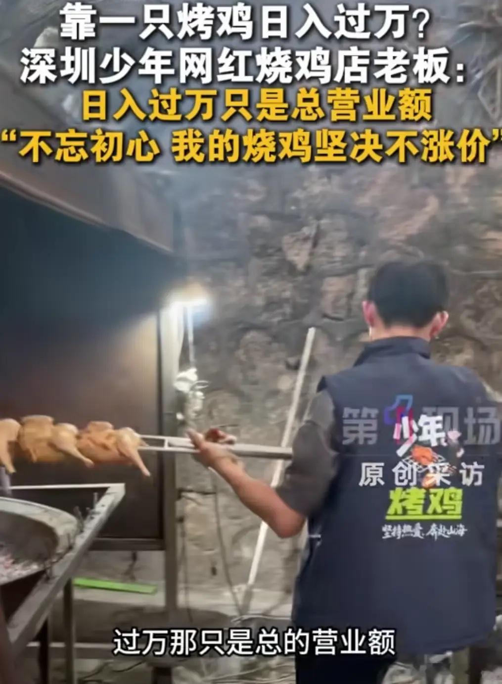深圳龙岗的“少年烤鸡”火了!老板是一名来自潮汕的16岁少年小陈,半年前被网红李维刚探过店,历时半年突然间被人拍视频火了。前几天小陈接受采访说,卖烤鸡日入过万,每个月还给农村父母寄几万块零花钱,很多人不信,毕竟一只烤鸡卖68块钱,过万起码每天要烤200多只鸡。今天他接受采访就反水了,说日入过万是总营业额,雇了15个工人在干活,到他自己手上也就是1千多块钱。还是年轻没经验,当着镜头承认了自己的实际收入日过千元,也就意味着要缴纳30%的税,想必他没这方面的意识。会看看门道,不会看看热闹,给人感觉是莫欺少年穷,少年凭自己的努力挣来了流量,但明白人一看便知,背后一定有资本在操纵。用小陈自己的话说:“不知道怎么一下就火了”。某个平台隔三差五就会推一个素人网红,像唱歌的郭有才,剪头发的阿华,开店的肥娟小吃,街头摆摊鸡排哥,这又来个“少年烤鸡”。除此之外,在深圳的人都知道,烤鸡这玩意儿并不是很多人吃,夜市吃的人更少,当前被捧得越高,到时摔得就有多痛,待热度散去,一地鸡毛!