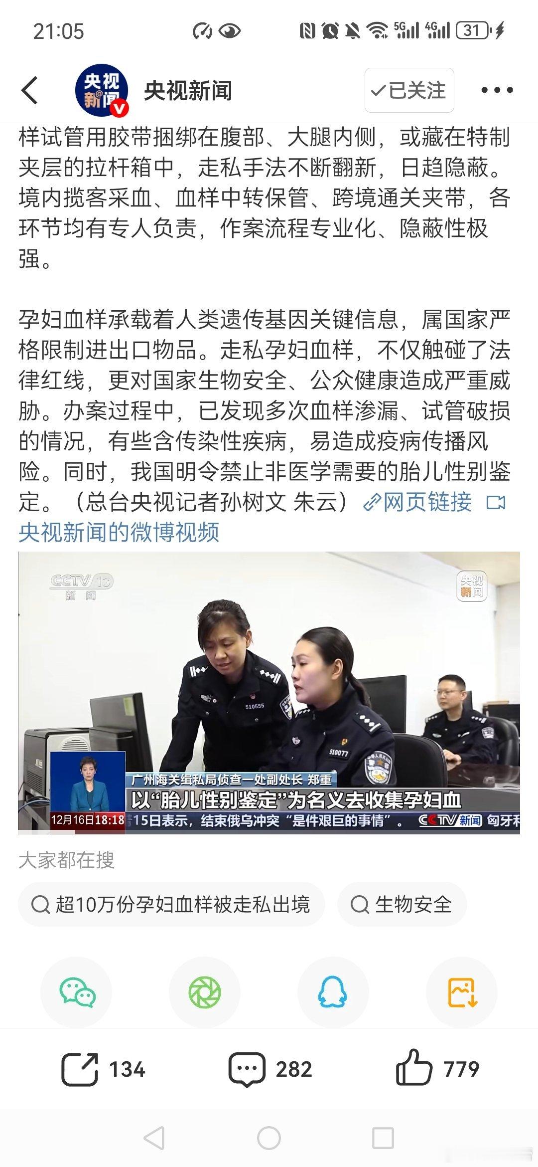 嫌犯把孕妇血绑身上走私【超10万份孕妇血样被走私出境这个太恶劣了,关系到未来的基因安全,严厉打击!这只是被抓到了!明显不是第一次,第一次量不会这么大!之前肯定都不知道成功走私多少次了!应该“买卖同罪”那些花钱把血样送出去查的人也应该受罚。 这些人太坏了,为了赚钱把中国人的基因血样给别有用心的外国机构!