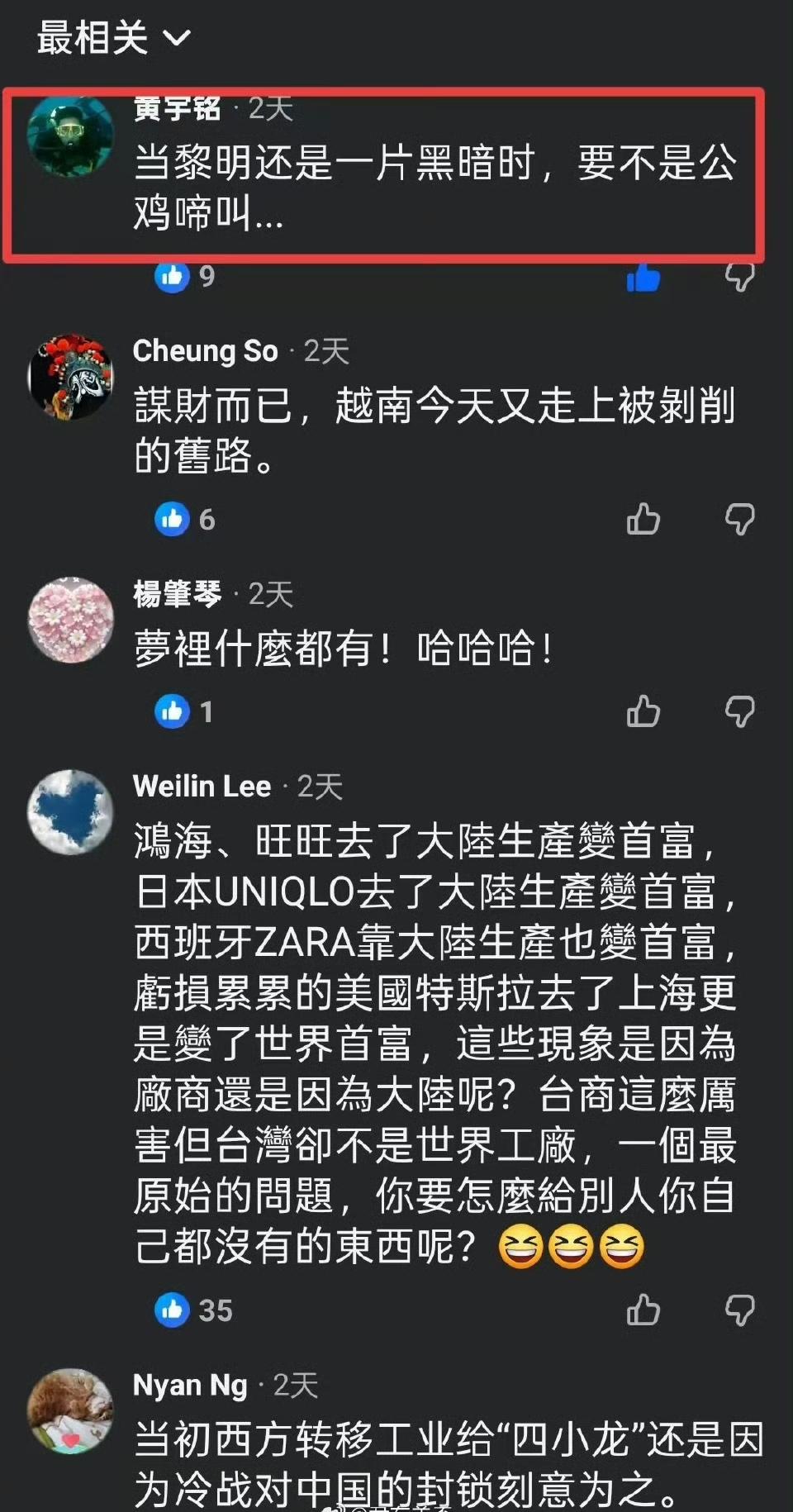 台湾很多人总觉得没有台湾人,大陆就不可能发展起来,我很喜欢评论区这位网友的评论,一针见血! 其实吧,做生意嘛,本来就是相互成就双向奔赴,说一方单向付出本来就很荒谬。
