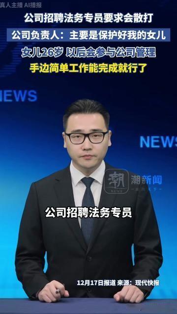 我今天刷到个招聘,差点把手机摔了! 招法务专员,核心要求没提过法考,也不说要有商事经验,反而要会散打! 负责人直言:主要保护我26岁的女儿,她以后管公司,法务做简单工作就行,这哪是招法务,是招能写合同的保镖啊! 有人说老板护女心切,做父母的都能理解;也有人说这太扯了,法务是专业岗,凭啥要兼保镖? 可26岁是成年人了吧?要管公司就得有自己的能力啊!担心安全可以请安保,把法务岗变护女岗,到底是保护还是觉得她镇不住场子? 要是你,会去应聘这个要打拳的法务吗?老板这波是护女还是用错方式? 大家怎么看?