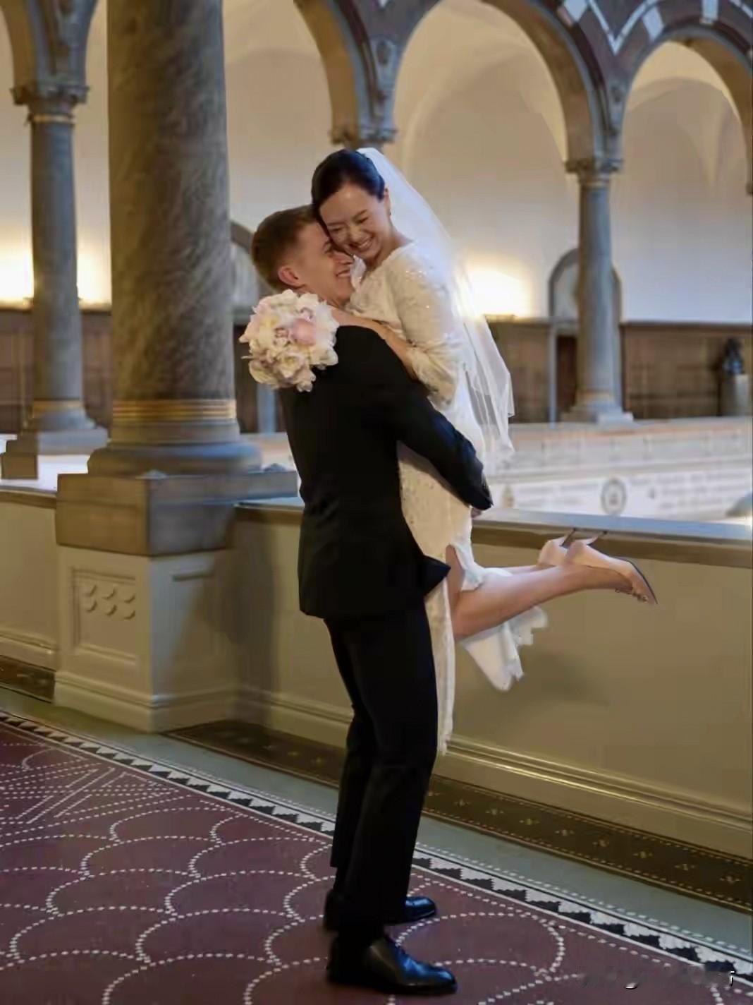 27岁的瑞典男乒国手安东·卡尔伯格与28岁的德国华裔美女球员万远的跨国恋情一直是乒坛的一段佳话,前日,已经相恋8年的两人终于登记结婚了,卡尔伯格将穿着白色婚纱的万远拥入怀中,这对跨国情侣终于修成正果。