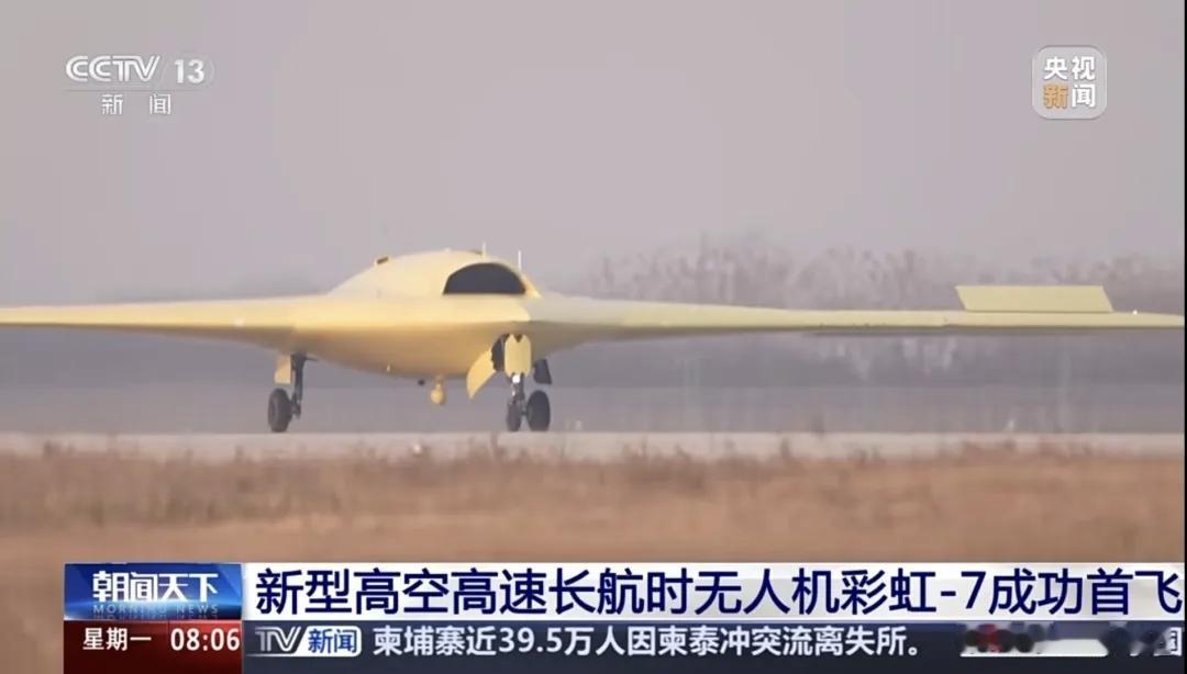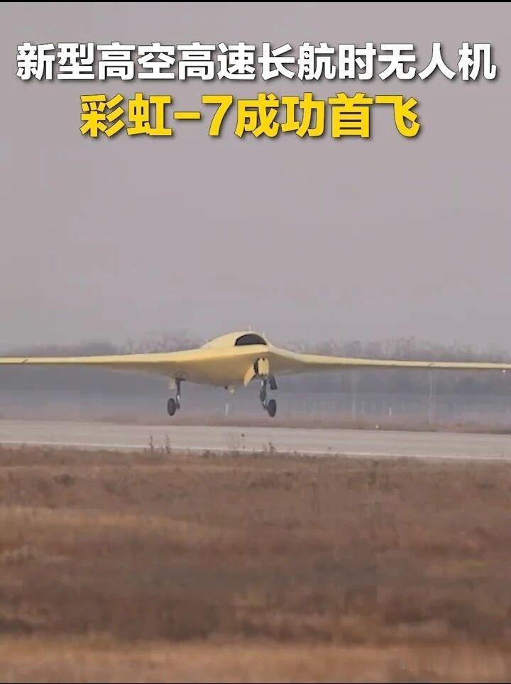 12月18日,据社交网站报道,彩虹一7无人机首飞成功,厉害在那里呢? 主要有以下几点: 一是彩虹一7无人机隐身技术非常先进,航程远达到了8000公里,飞行高度16000米,巡航时间16个小时。 二是,彩虹一7无人机飞翼布局,没有尾翼,所以说雷达反射面很小,低于0.01,美军很难探测到。 三是,彩虹一7无人机可以携带鹰击一21高超音速弹道导弹和鹰击一17高超音速弹道导弹。 四,彩虹一7无人机具有很强的侦察能力,具备了察打一体功能。 五,彩虹一7无人机可以与“九天”无人机组成编队,那将使敌人的末日降临。 因此,这两款无人机是敌人的克星,完全可以让敌人不敢轻举妄动。[赞][赞][赞][赞][赞][赞][赞]