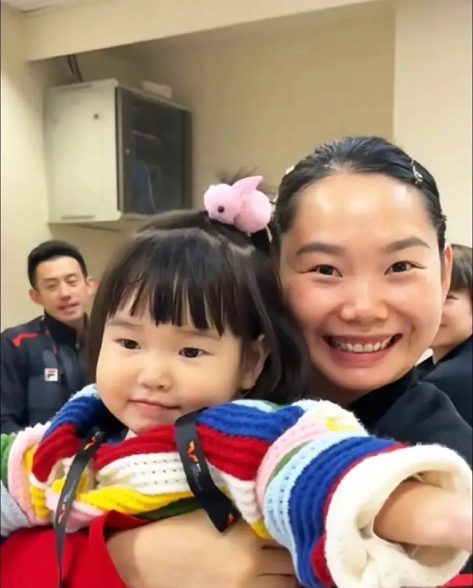 黄镇廷把4岁闺女带进香港总决赛内场,小丫头扎个丸子头,见谁抱谁,逮住孙颖莎就唱小星星,还奶声奶气命令姐姐笑一个,硬是把世界第一逗得蹲在地上揉脸。 王艺迪和陈幸同排队合影,小姑娘现场切换表情包,扭头噘嘴比耶,镜头全吃,现场记者直接改标题:今日最佳不是决赛,是团宠。 老黄在后面拿手机当奶爸,笑得比赢球还开心,港媒抓拍他偷偷抹眼角。 球迷刷屏说竞技体育最缺这种软萌瞬间,比金牌治愈。 孩子一句童声小星星,把赛场杀气全唱没。 体育本该这样,有刀光剑影,也有温柔抱抱。