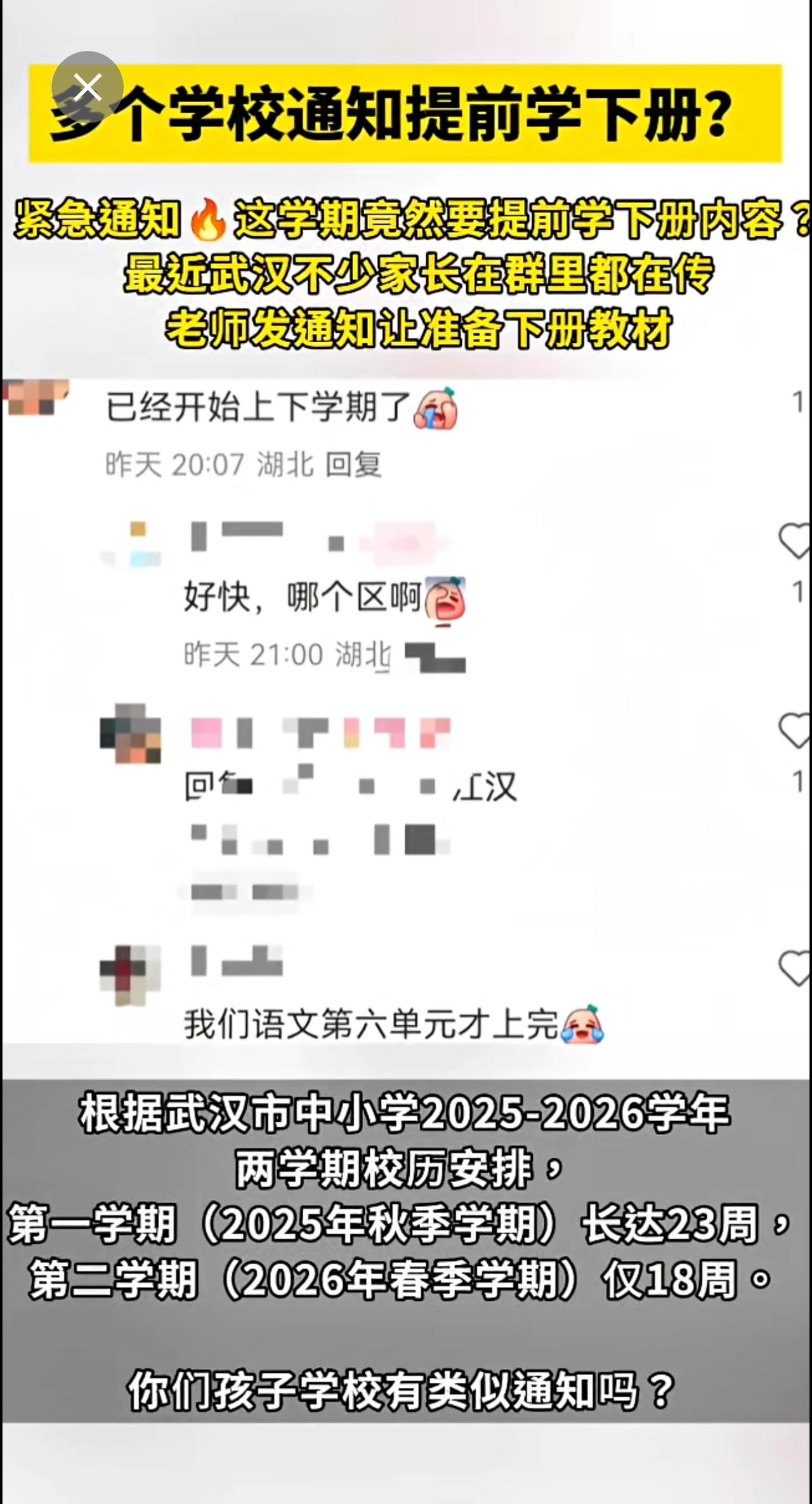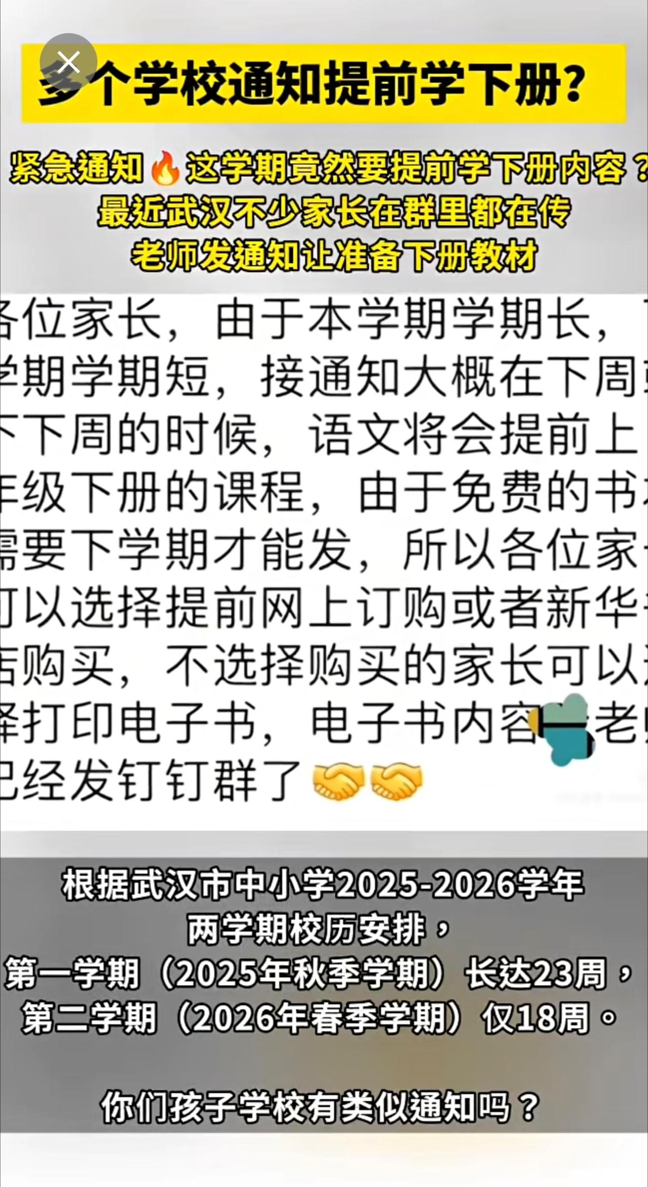 紧急通知!下学期太短了,本学期提前学下册内容,需家长自备教材?你们学校有类似通知吗?