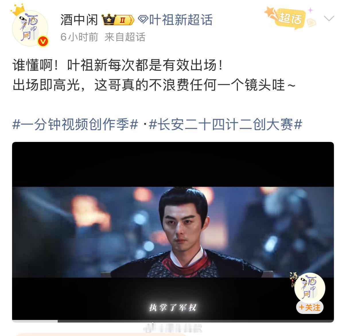 叶祖新回应网友没有浪费镜头网友感叹叶祖新在《长安二十四计》里从不浪费镜头,每一