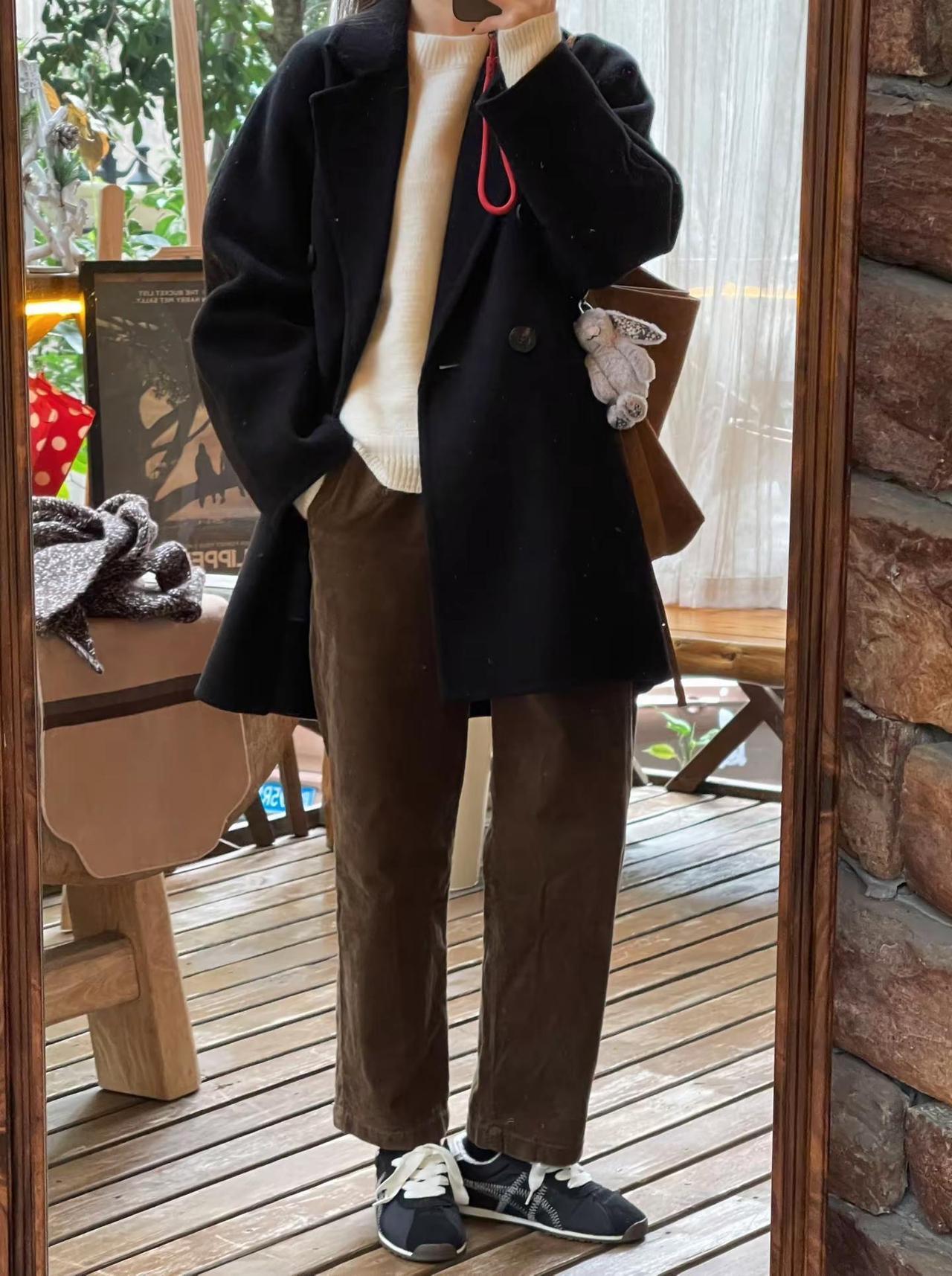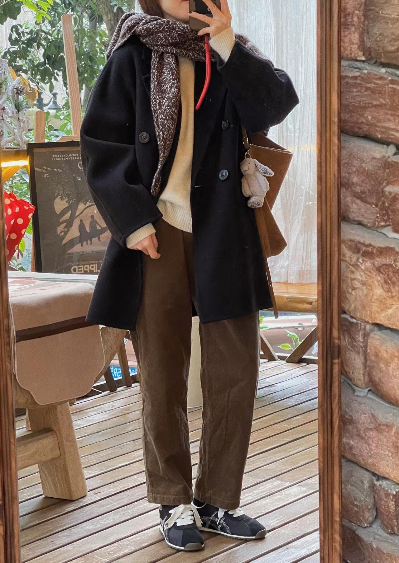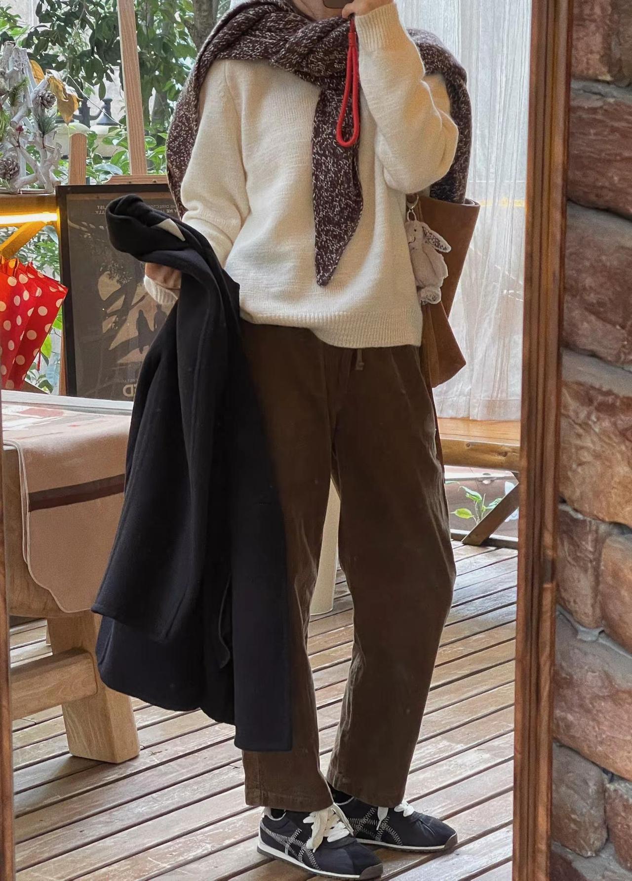 日常通勤ootd.这件毛衣的颜色真的温柔到我了🥛🫧🧶:Yulan娜娜🧣:周山zhoushan🧥:莉贝琳传承大衣👖:优衣库灯芯条浅褐色👟:鬼塚虎温柔穿搭 韩系穿搭 今天穿什么 穿搭日记