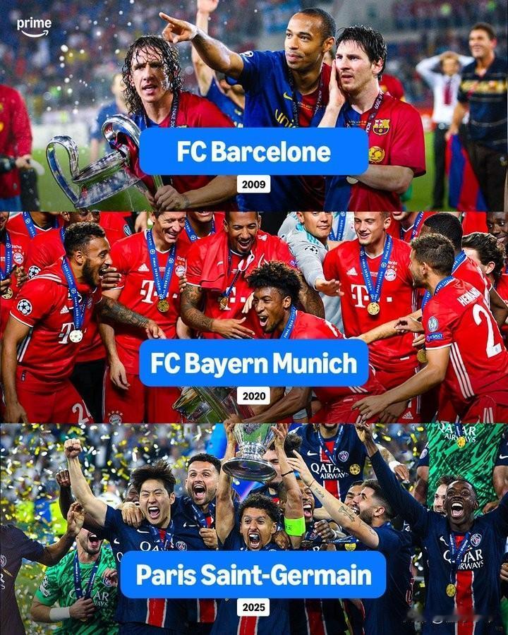 欧洲三大六冠王球队,哪支球队更强? 2009年巴萨:国王杯冠军(4-1毕尔巴鄂竞技)+西甲冠军(3-2皇马后提前3轮夺冠)+欧冠冠军(2-0曼联)+西班牙超级杯冠军(5-1毕尔巴鄂竞技)+欧洲超级杯冠军(1-0顿涅茨克矿工)+世俱杯冠军(2-1拉普拉塔大学生)。 2020年拜仁:德甲冠军(提前2轮八连冠))+德国杯冠军(4-2勒沃库森)+欧冠冠军(1-0巴黎)+欧洲超级杯冠军(2-1塞维利亚)+德国超级杯冠军(3-2多特蒙德)+世俱杯冠军(1-0墨西哥老虎)。 2025年巴黎:欧冠冠军(5-0国米)+法甲冠军(提前6轮四连冠)+法国杯冠军(3-0兰斯)+法国超级杯冠军(1-0摩纳哥)+欧洲超级杯冠军(6-5热刺)+洲际杯冠军(3-2弗拉门戈)。 09巴萨唯一的污点就是欧冠半决赛出现了“斯坦福桥惨案”,20拜仁唯一的不足就是当家球星没有拿到金球奖,25巴黎唯一的遗憾就是世俱杯决赛输给了切尔西。
