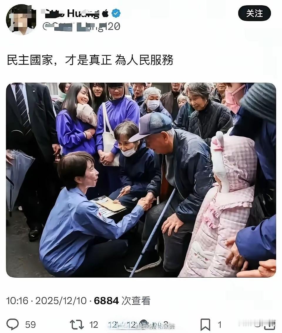 “屈身灾区慰问”…2011年东日本大地震后,前首相安倍晋三的灾区之行堪称摆拍范本。他携完整摄制组赶赴受灾地,提前布景调光、安排受访群众,在镜头前念诵备好的慰问台词,将满目疮痍的灾区,变成了个人形象宣传的秀场。 刚过去的12月,日本灾情连发,首相高市早苗循着前辈老路现身灾区。她在镜头前与民众握手寒暄,摆出关切姿态,其团队同步将照片、视频投放至社交平台造势。日本外务省的宣传机器随即开动,在X平台上大肆渲染这份“温情”,用煽情话术包装所谓的“民主关怀”,试图收割舆论好感。 只是戏终究是戏,再精致的摆拍也经不住现实的检验。更怕有“侠客”现身,来一场真的不经彩排的演出。