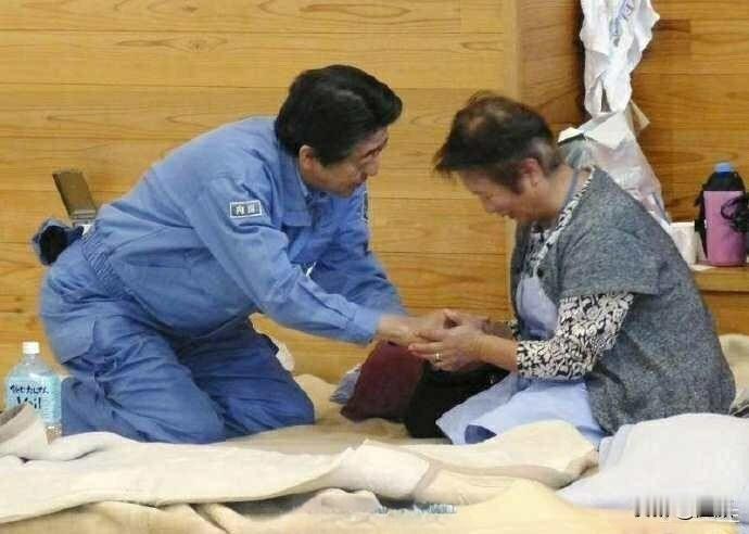 “屈身灾区慰问”…2011年东日本大地震后,前首相安倍晋三的灾区之行堪称摆拍范本